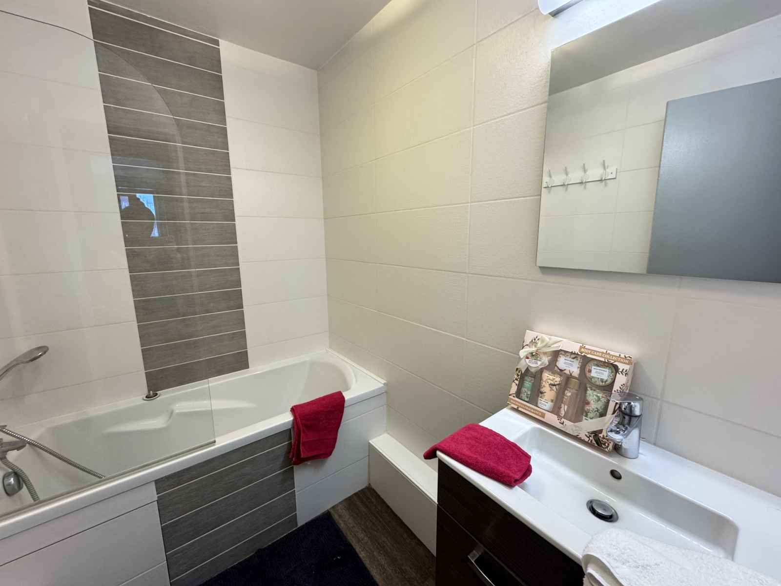 la location de l’appartement. (Possibilité de louer une place de parking couverte) Vous trouverez dans l’appartement : Un coin cuisine aménagé avec réfrigérateur, plaque vitro, four, four micro-ondes, lave-vaisselle et lave-linge. Un séjour avec un canapé lit gigogne, télévision Cabine avec un lit double 140 cm x 190 cm Salle de bain avec baignoire et toilette séparé Accès à un casier à skis privé. Prestations non incluses dans le tarif : Linge de toilette, Linge de lit, matériel Bébé, Ménage de fin de séjour Appartement non-fumeur Animaux acceptés (taxe de 50€ par animal)