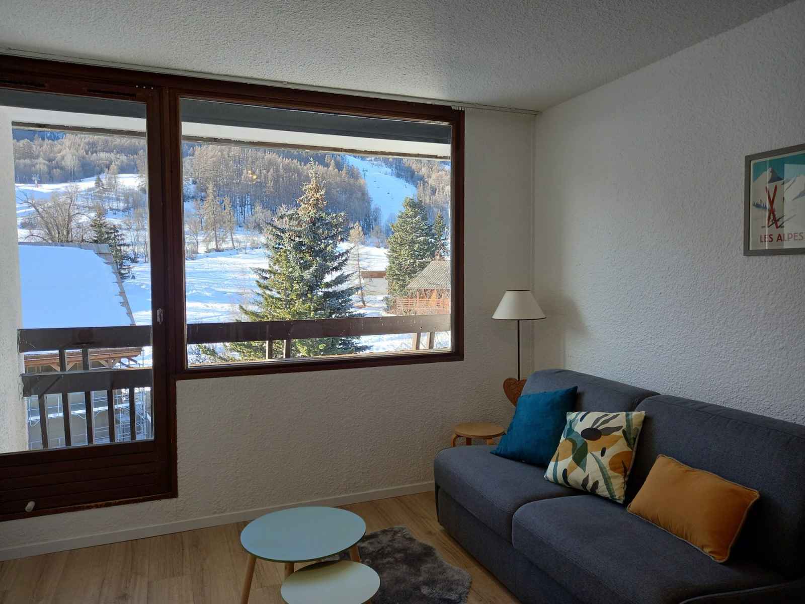 Studio de 25 m² pour 4 personnes, idéalement placé au pied des pistes dans une résidence à 5 minutes des commerces à pied et avec une jolie vue sur les montagnes.