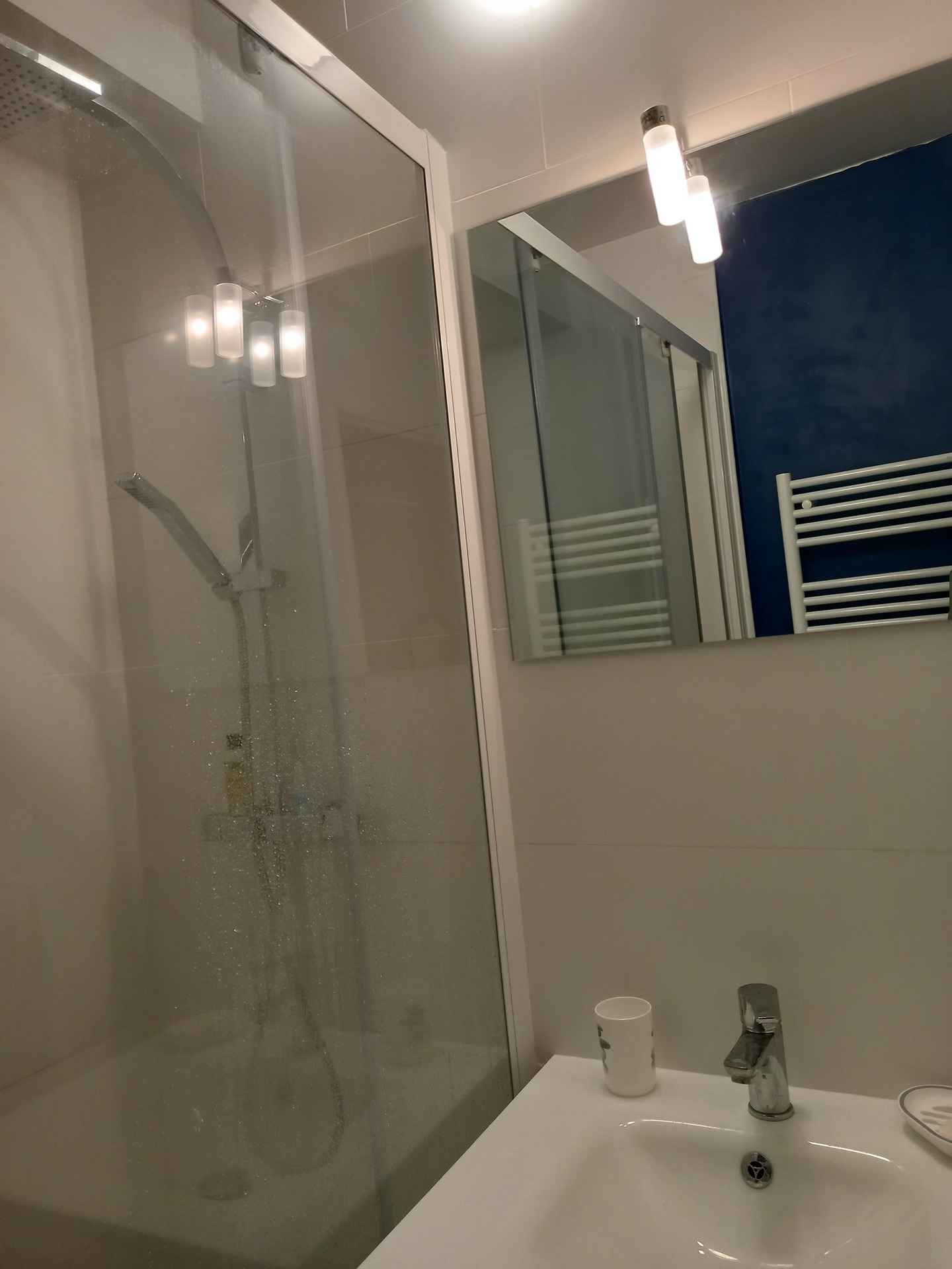 une kitchenette équipée (frigo top, plaque induction, lave-vaisselle, four micro-ondes, 1 cafetière à