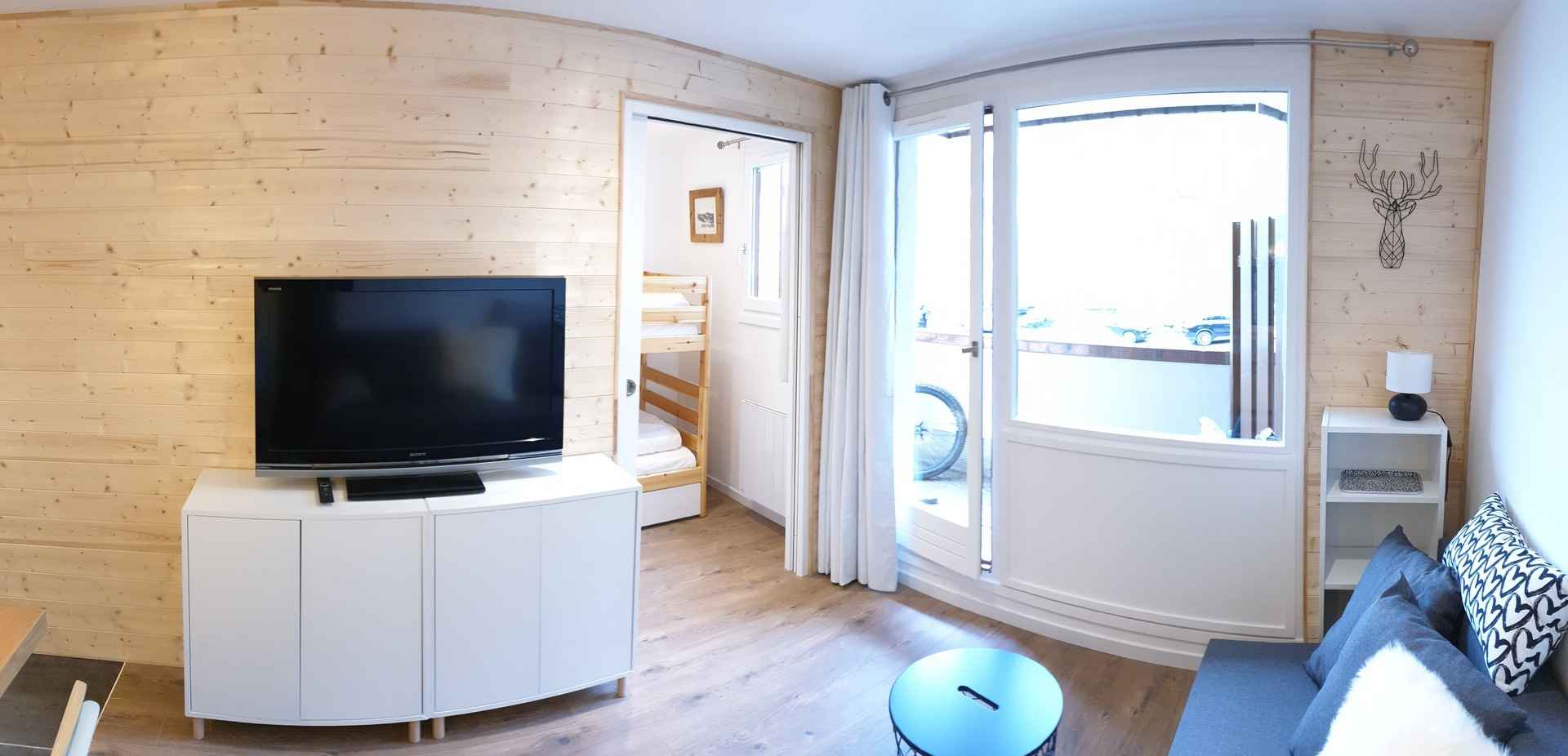 appartement entièrement rénové de 22m² équipé pour 4 personnes et situé au 1er étage de la résidence "hameau du borsat i&ii", à tignes val claret. au pied des pistes.