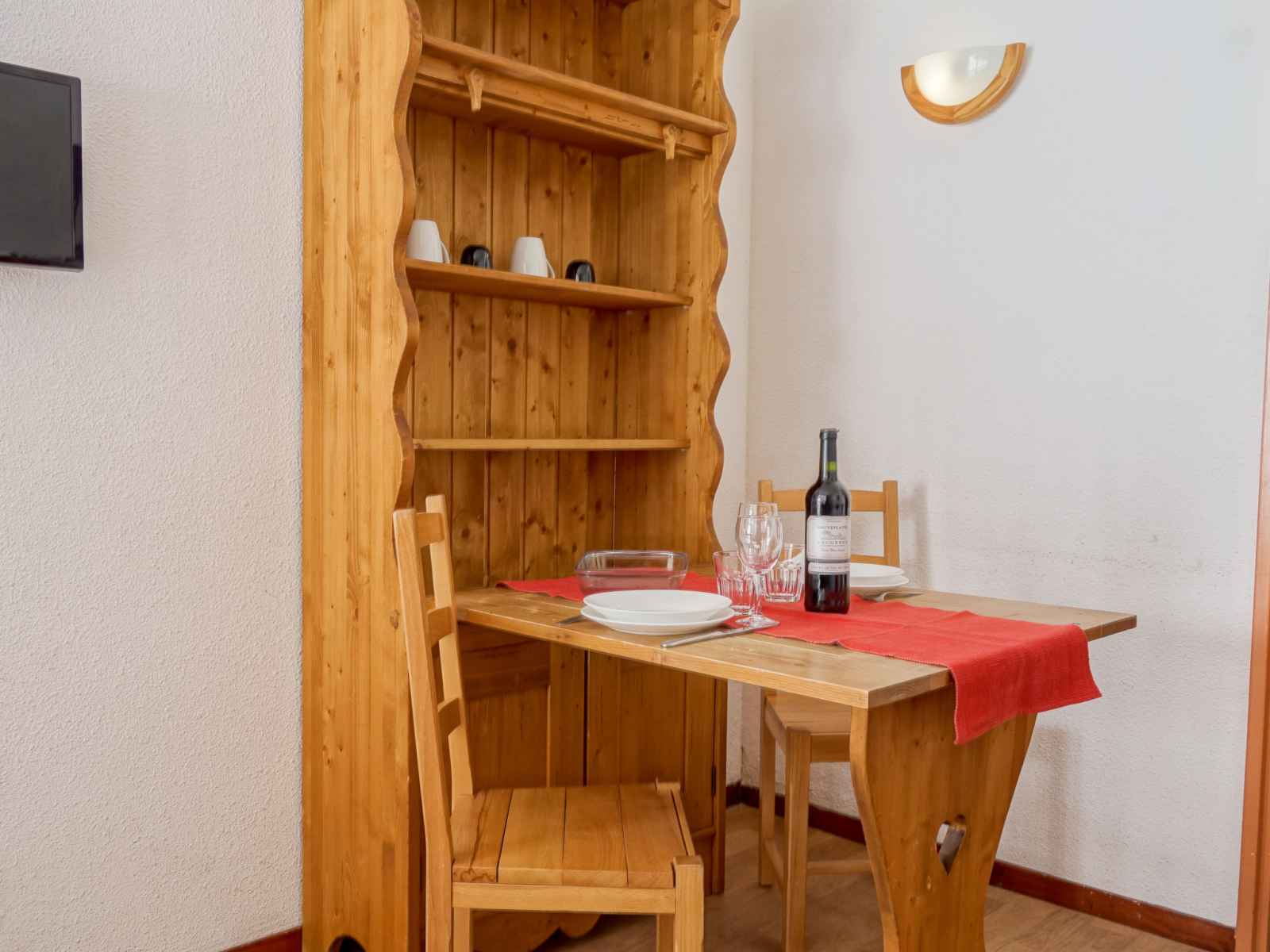 Studio 18 m2 au 2ème étage. logement idéal pour 2 adultes. aménagement simple et fonctionnel: séjour/salle à manger avec 1 lit gigogne (2 pers. 2 x 80 cm). coin cuisine (2 plaques vitrocéramiques, micro-ondes). douche/wc. situation sud. vue sur les montagnes. a disposition: internet (connexion wifi, en sus). veuillez noter: logement