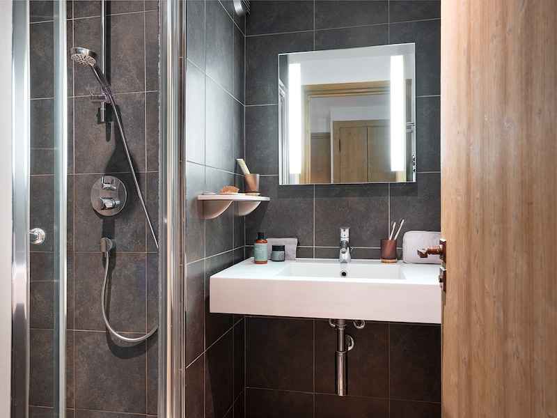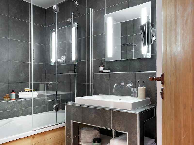 intérieurs favorisent les lignes contemporaines tandis que l'utilisation généreuse du bois apporte une note d'authenticité, dans l'esprit de la savoie.