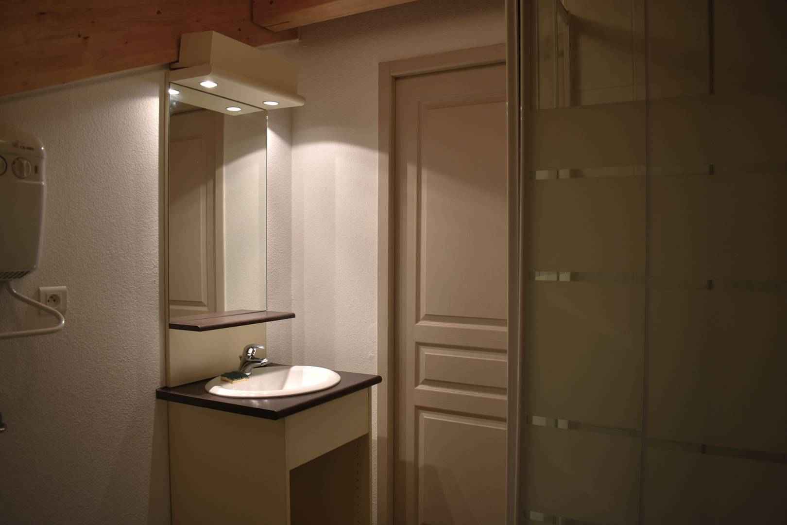 Salle de bains au niveau du séjour & salle d’eau avec WC sur la mezzanine.