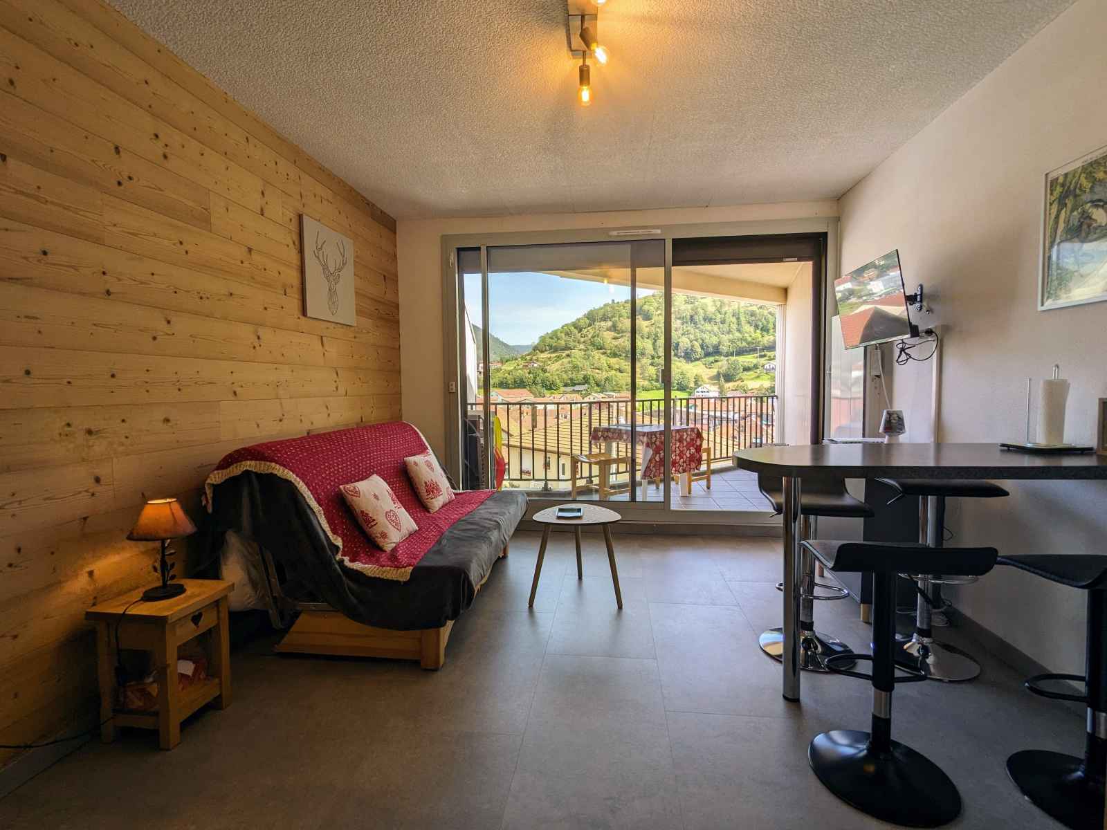 Bresse-Hohneck / gare TGV Remiremont. Studio avec terrasse entièrement rénové, composé : - D'une cuisine équipée, 2 feux induction, four, réfrigérateur avec compartiment freezer, four à micro ondes. Cafetière filtre, gril pain, bouilloire. Nécessaire de cuisine. Appareil à raclette. - D'un coin salon-séjour avec, espace repas pouvant accueillir jusqu’à 4 personnes. Canapés lit convertible avec matelas (160/200), TV . WIFI. - Une salle de bain avec baignoire (140/70) sèche serviette électrique et sèche cheveux. - Un Wc indépendant - Terrasse avec salon de jardin, parasol. Place de parking privative dans les garage de la résidence. Accès à un local à ski fermé. Les charges sont comprises. Linge de maison inclus, draps compris, linge de toilette compris. Ménage de fin de séjour inclus.