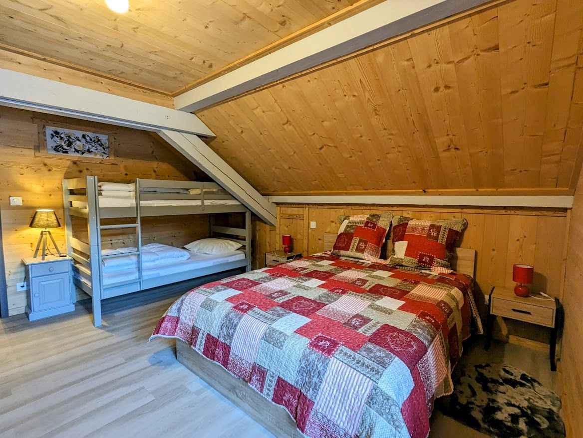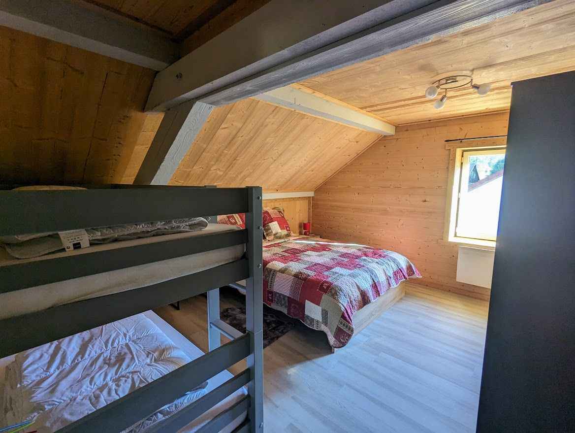 chaleureux avec un intérieur bois, il saura vous faire passer un agréable séjour. Place de parking et garage privée. Espace plein air. Appartement au deuxième et dernier étage composé d'une pièce à vivre de 27m² loi carrez (46m² surface au sol) avec cuisine intégrée et équipée : 3 feux vitrocéramique, four, micro-onde, hotte, réfrigérateur et compartiment congélateur, bouilloire, cafetière (filtre et dosettes Senseo), grille-pain. Nécessaire de cuisine. Télévision et accès wifi. Salle d'eau de 4m² loi carrez (8m² au sol) avec douche, lave-linge, sèche-cheveux, sèche-serviettes, WC. Chambre avec lit 160x200cm + lit superposé 2x90x190cm de 12m² (16m² au sol) Local de rangement au sous sol pour skis et vélos Extérieur : jardin avec salon de jardin, chaises longues et parasol, babecue partagé avec les logements de la résidence. Charges non comprises (relevé de compteur à l'arrivée et au départ). Draps, linge de toilette et ménage en option. Linge de maison compris. Matériel bébé à la demande : lit parapluie et chaise haute. ouvert toute l'année Vous serez accueillis par le propriétaire. Merci de le contacter 1h avant d'arriver au gite.