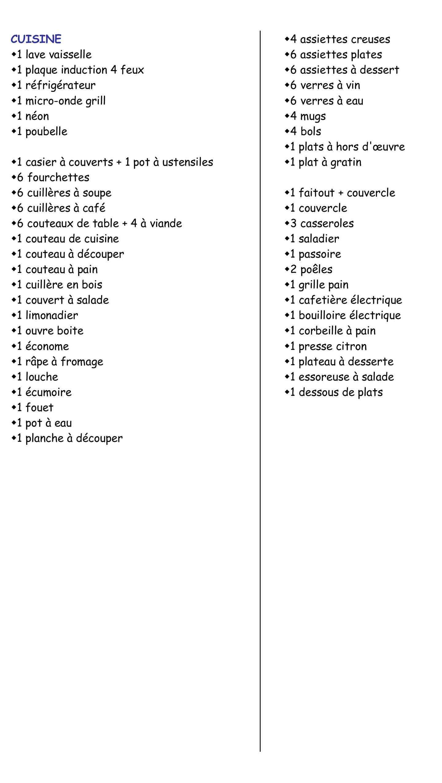 • Equipements : Balcon, Chauffage Electrique, réfrigérateur, Lave vaisselle, Micro onde, Télévision