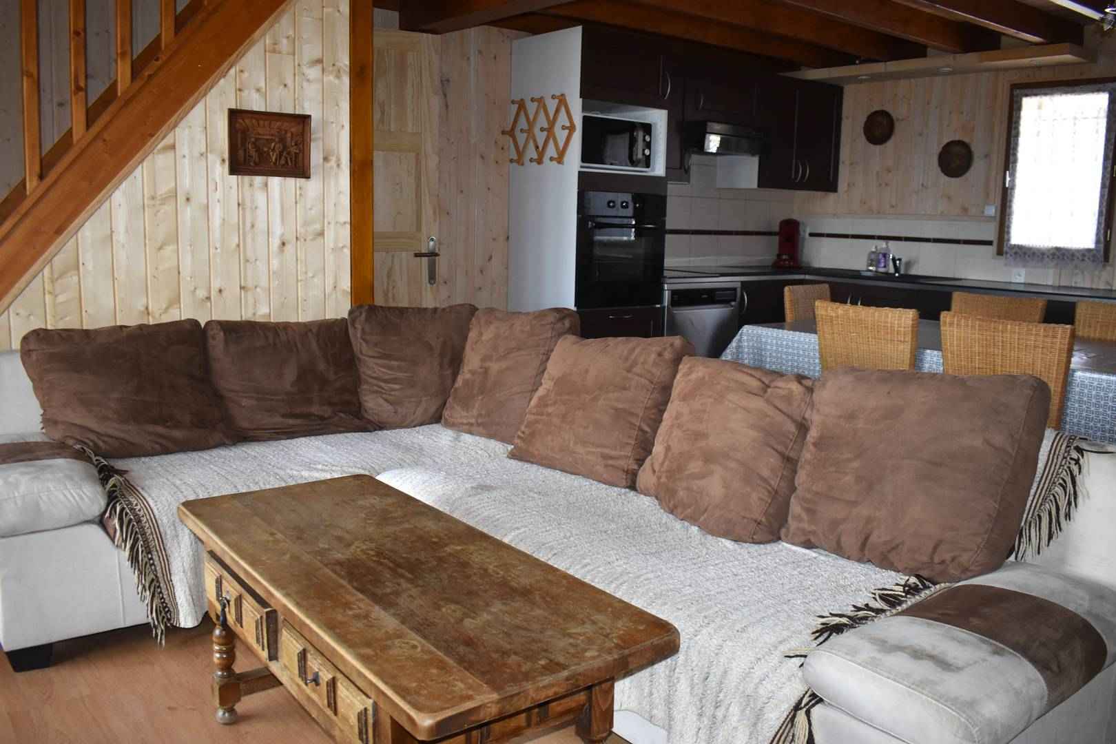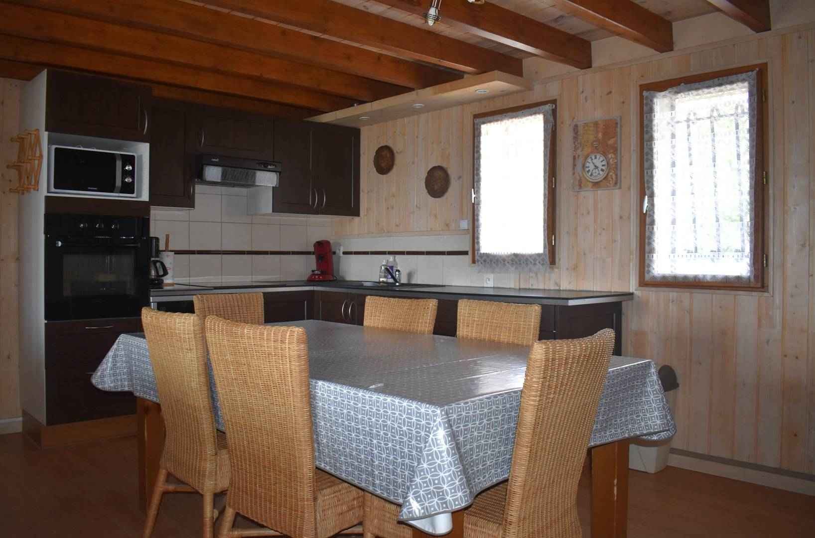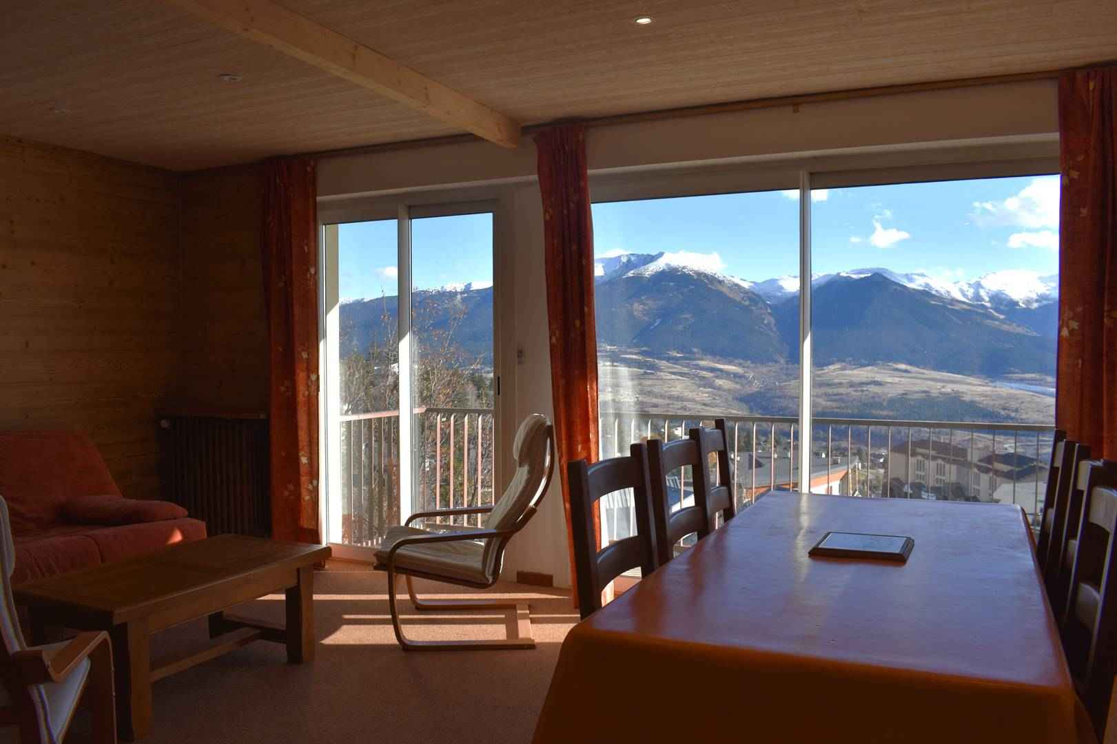 ce chalet est exposé plein sud sur deux étages, le chauffage est électrique et eau chaude par cumulus.