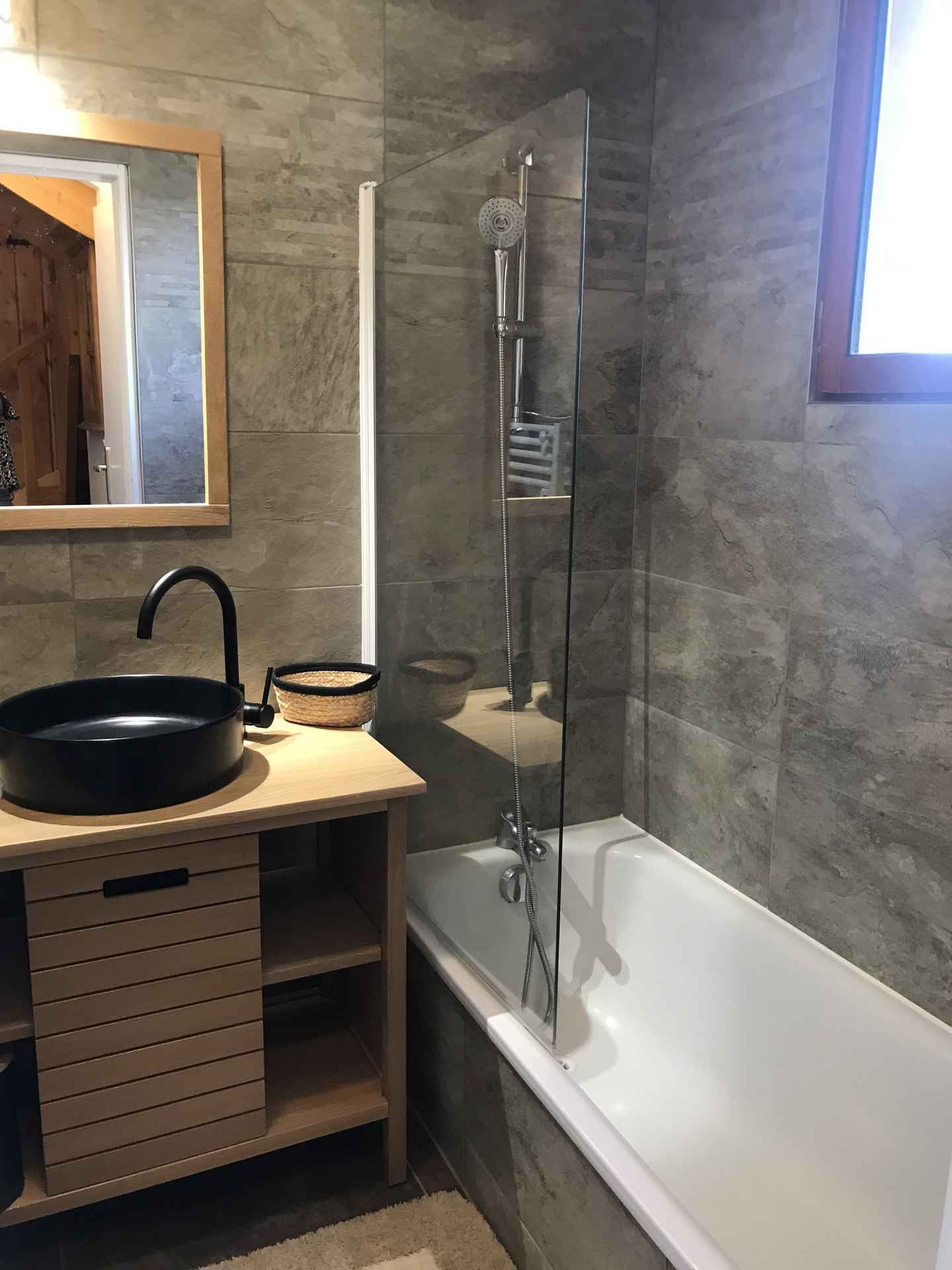 terrasse avec vue montagne. local à skis. parking