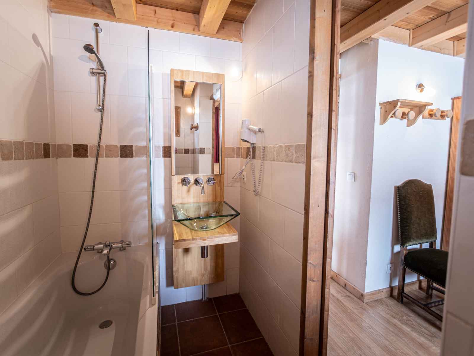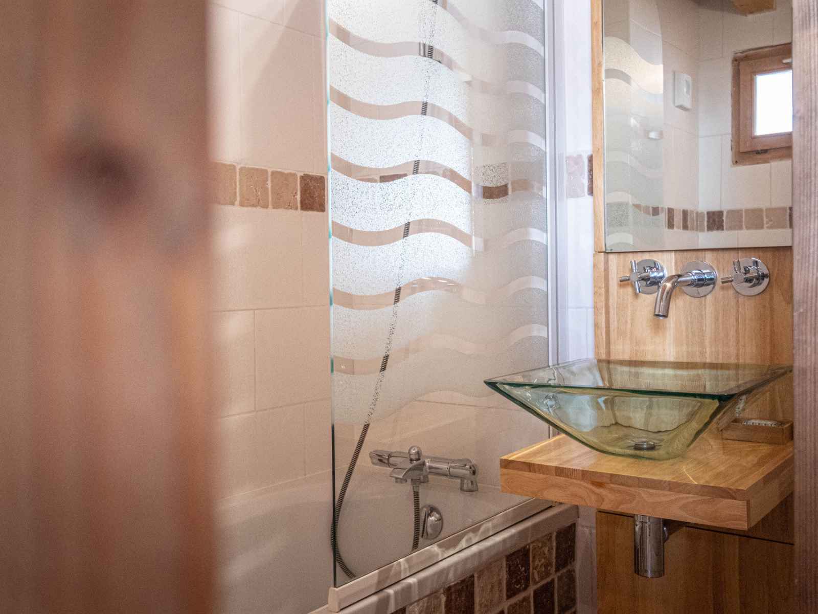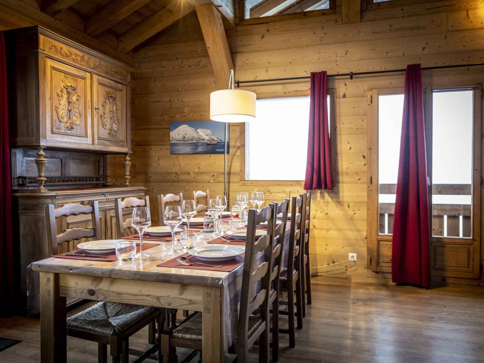 l’on peut rapprocher pour faire 1 lit double + salle de douche + WC privatif - 1 chambre avec 2 lits simples (90 x 200) + TV + salle de douche + WC privatif - 1 chambre avec 1 lit double (160x200) + salle de bain + WC privatif - 1 local à ski privatif (vers l’entrée) avec sèche chaussures et rack à ski - 1 sauna avec 1 douche et 1 WC commun 1er étage : - 1 chambre avec 1 lit double (160x200) + salle de bain + WC privatif - Espace salon avec 2 canapés, cheminée (granulés de bois), TV écran plat, une grande terrasse plein Sud avec mobilier de jardin et un balcon côté ouest - Coin repas avec une grande table pour 10 personnes maximum - Cuisine ouverte entièrement équipée : réfrigérateur/congélateur, cafetière filtre (filtres fournis), bouilloire, grille-pain, four, micro-ondes, hotte aspirante, plaque de cuisson halogène, lave-vaisselle, petit congélateur, matériel de cuisine et vaisselle, 1 Tireuse à bière pour fût de 6L (en vente à la réception) - Mezzanine : espace salon avec petite table et chaises pour enfants ; banquette et TV En extérieur : 1 jacuzzi 5 places partagé avec le Pierra Menta 2 (accessible 1 jour sur 2) A NOTER : Les lits sont faits à l’arrivée et les serviettes éponges sont fournis. Toutes les salles de bain sont équipées d’un sèche-cheveux mural. Chalets Pierra Menta 1 et Pierra Menta 2 sont mitoyens et sont situés derrière le Chalet le Cocoon. 1 place de parking derrière le chalet et 2 places sur le parking privé en face Animaux tolérés avec supplément de 100 € Borne de recharge pour voiture électrique à 50m.