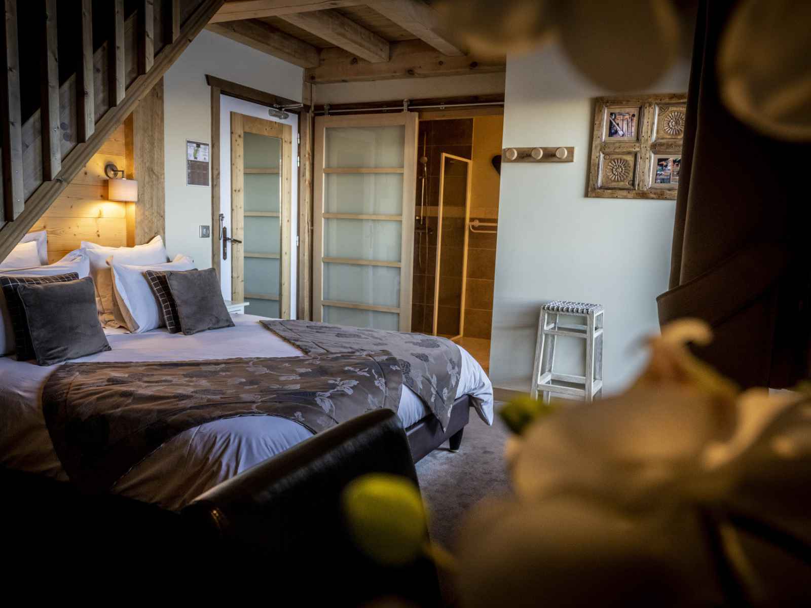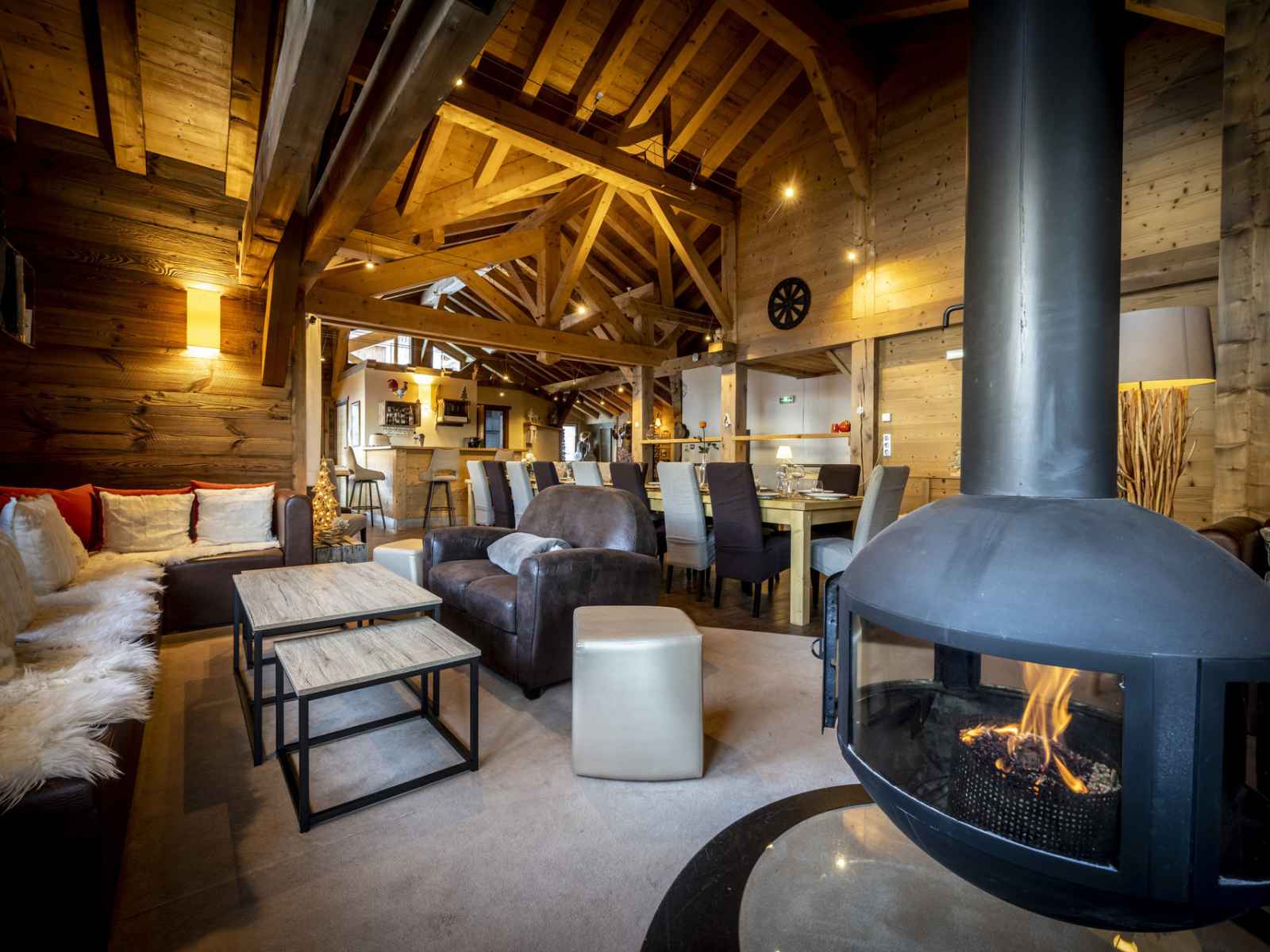 à repasser + Etendage à linge et Espace bagagerie - 2 chambres (CONFORT) avec 1 lit double (160x200) + salle de bain avec baignoire dont 1 ouverte sur la chambre + WC privatif - 1 chambre (CONFORT) avec 1 lit double (160x200) + salle de douche + WC privatif - 1 chambre SUPERIEURE avec 2 lits simples (90x200) ou 1 lit double 180x200 (possibilité de les rapprocher) + 1 lit enfant (80x190) + salle de bain avec baignoire + WC privatif - 1 chambre SUPERIEURE avec 1 lit double (180x200) ou 2 lits simples 90x200 (possibilité de les séparer) + 1 lit enfant (80x190) + salle de douche + WC privatif 1er étage : - 1 chambre FAMILLE avec 1 lit double (160x200) et 2 lits simples (90x200) en mezzanine + 2 WC privatifs + salle de douche + terrasse avec jacuzzi et mobilier d’extérieur (vue Mont Blanc) - 1 chambre LUXE avec 1 lit double (180x200) et 1 lit enfant (90x190) en mezzanine + salle de douche et WC privatif + balcon avec mobilier d’extérieur (vue Mont Blanc) et accès jacuzzi Cette chambre est aménagée pour les personnes à mobilité réduite - En extérieur : Local à ski privatif avec sèche chaussures et rack à ski - En extérieur : 1 sauna et sur la terrasse de la CH6, 1 jacuzzi 5 places avec vue Mont-Blanc - Espace salon avec 2 coins canapés, cheminée suspendue (granulés de bois), TV écran plat - Cuisine entièrement équipée : cafetière pro pour café moulu (filtres fournis), four et micro-ondes, plaque de cuisson induction, lave-vaisselle - 1 bar avec étagères + 1 tireuse à bière pour fût de 6L (en vente à l’accueil) - 1 espace enfant/ado avec jeux, billard (1 partie 2€), un jeu de flechette et un lecteur DVD - 1 WC commun A NOTER : Les lits sont faits à l’arrivée et les serviettes éponges et peignoirs sont fournis. Toutes les salles de bain sont équipées d’un sèche-cheveux 5 places de parking extérieures et possibilité de 2 places dans le garage Animaux tolérés avec supplément de 100 € Bornes de recharge pour voiture électrique à 50m.