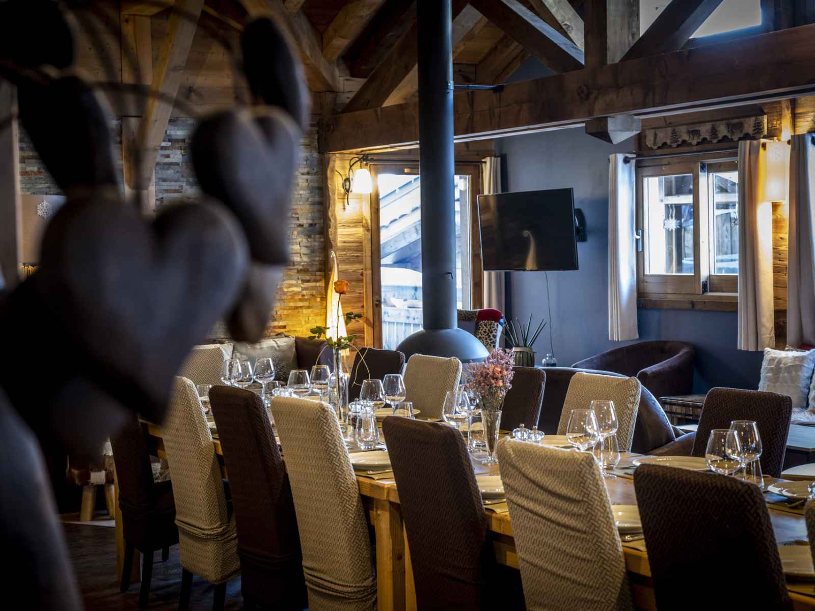 A plagne 1800, luxueux chalet individuel de 420m² comptant 7 chambres sur 2 niveaux pouvant accueillir 16 adultes et 3 enfants