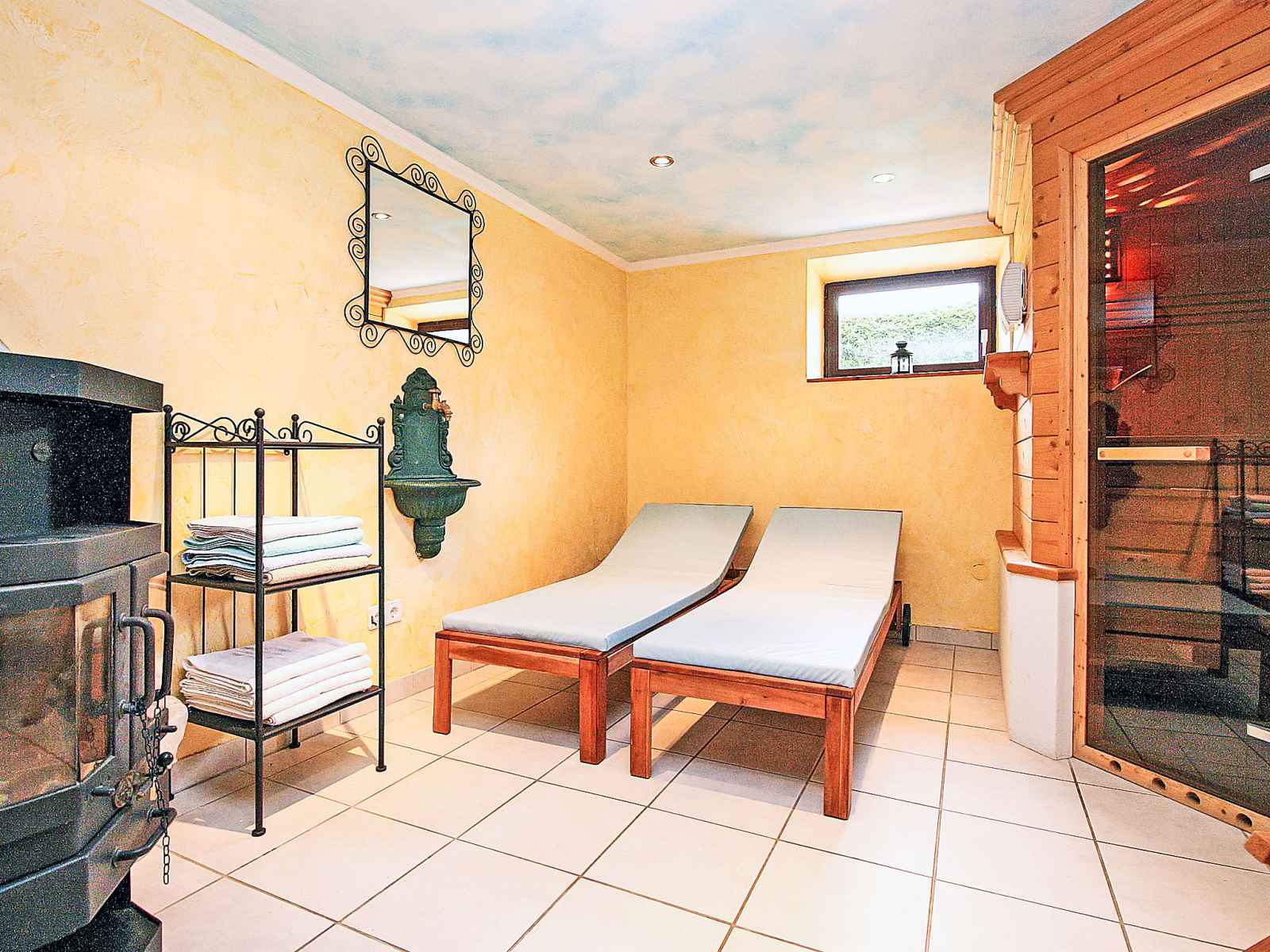 l'étage inférieur: bain/WC, Sauna. À l'étage supérieur: 2 chambres doubles, chaque chambre avec: douche/WC et TV (câblée) (écran plat). Sortie sur le balcon. 1 chambre avec 1 divan-lit, 1 lit double, douche/WC et TV (câblée) (écran plat). Sortie sur le balcon. 2 balcons, grande terrasse. Meubles de terrasse, barbecue, chaises longues, réduit. Très belle vue sur les montagnes et les pistes de ski. A disposition: lave-linge, sauna. Internet (Connexion WIFI, gratuit). Veuillez noter: maison non-fumeur. Maximum 1 animal/ chien autorisé. Détecteur de fumée. Lit pour enfant disponible sur demande uniquement, possible dans la limite du nombre maximum de personnes (10 personnes).