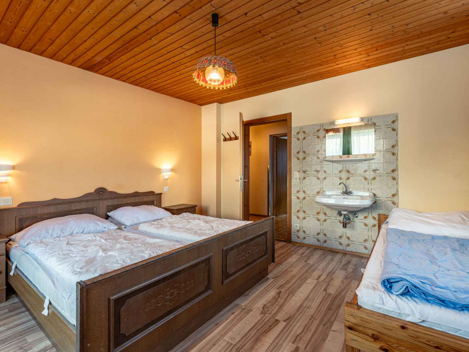 "pilz", maison 9 pièces 220 m2 sur 3 niveaux. aménagement rustique et plaisant: séjour/salle à manger avec table pour les repas, coin repas, tv (satellite), chaîne stéréo et poele de faience. 1 chambre avec 1 lit et 1 lit double. cuisine (four, lave-vaisselle, 4 plaques vitrocéramiques, micro-ondes, cafetière électrique) avec petite