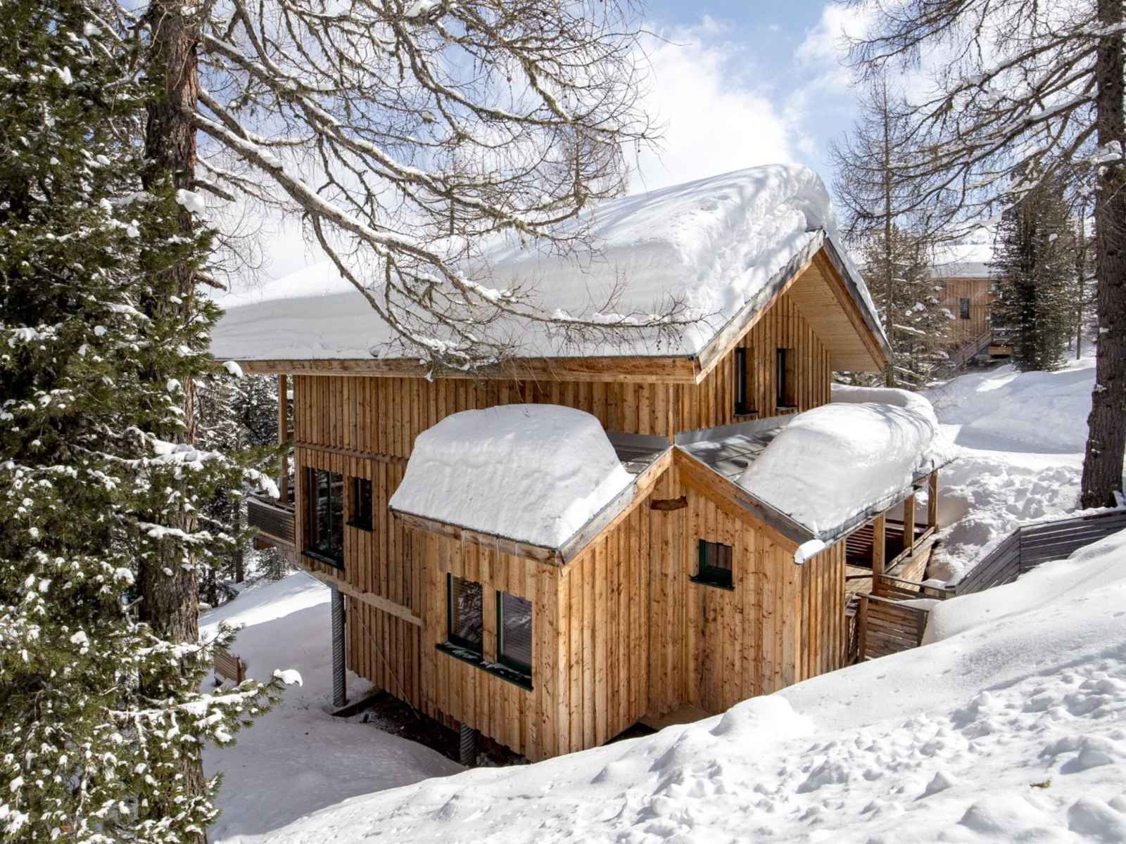 Turracher höhe: village de vacances confortable "alpenpark turrach by alps resorts", 1'800 m au dessus du niveau de la mer. 49 maisons dans le même complexe de vacances. À 2 km du centre, à 2 km du lac, à 2 km du domaine skiable, dans la forêt. infrastructures de la résidence: réception, connexion wifi, local pour les skis, chauffage