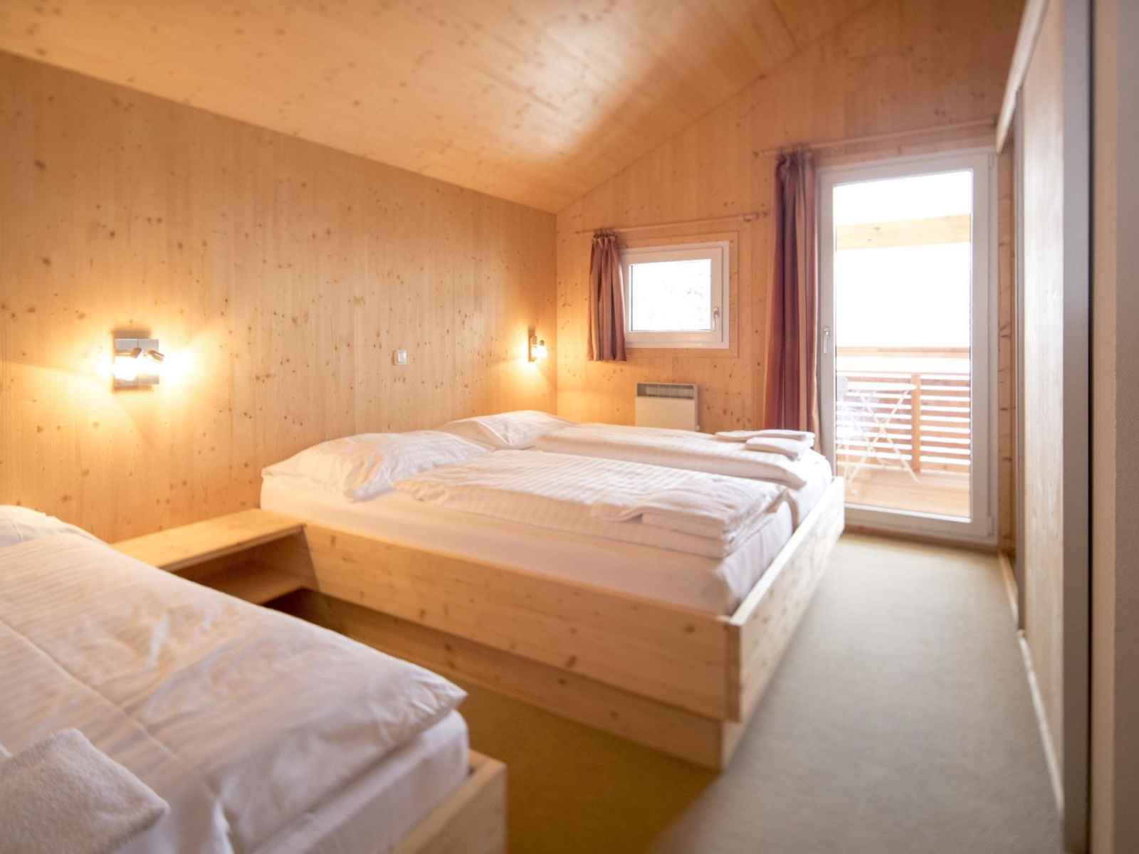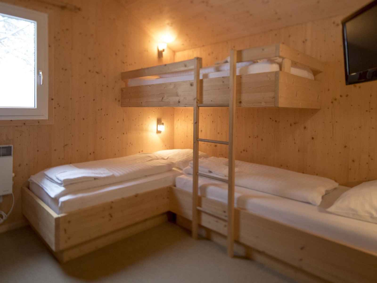 électrique). Douche/WC. À l'étage supérieur: 1 chambre avec 2 lits. 1 chambre avec 1 lit et 1 lit double. 1 chambre avec 3 lits et 1 x 2 lits superposés. 1 chambre avec 1 x 2 lits superposés. Séjour/chambre à coucher avec 1 x 2 lits superposés. Bain/WC, douche/WC, balnéo, Sauna. Balcon, terrasse. Meubles de terrasse. Belle vue sur les montagnes. A disposition: Internet (Connexion WIFI, gratuit). Veuillez noter: logement non-fumeur.