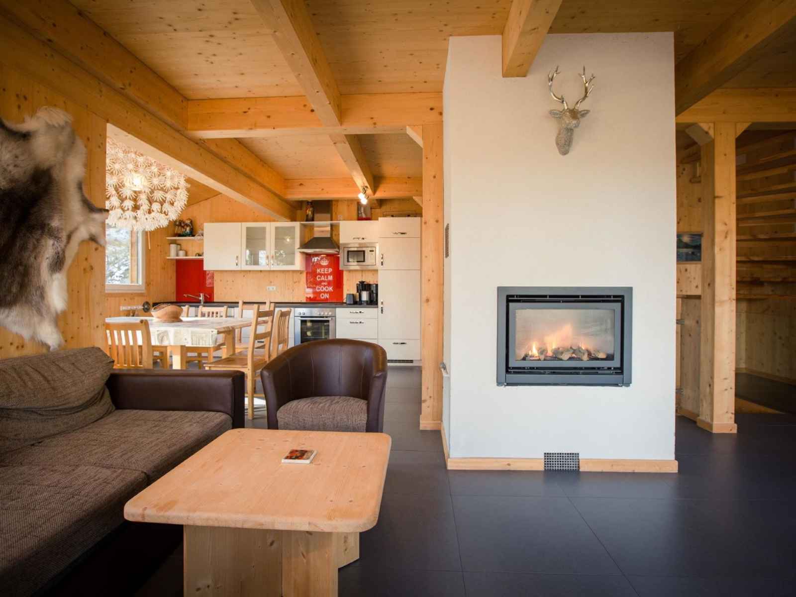 " 10 mit sauna und sprudelbad innen", chalet 7 pièces 160 m2. spacieux, aménagement luxueux et avec beaucoup de bois: séjour/salle à manger avec coin repas et tv (satellite) (écran plat). 1 chambre double. cuisine ouverte (four, lave-vaisselle, 4 plaques vitrocéramiques, grille-pain, bouilloire électrique, micro-ondes, cafetière