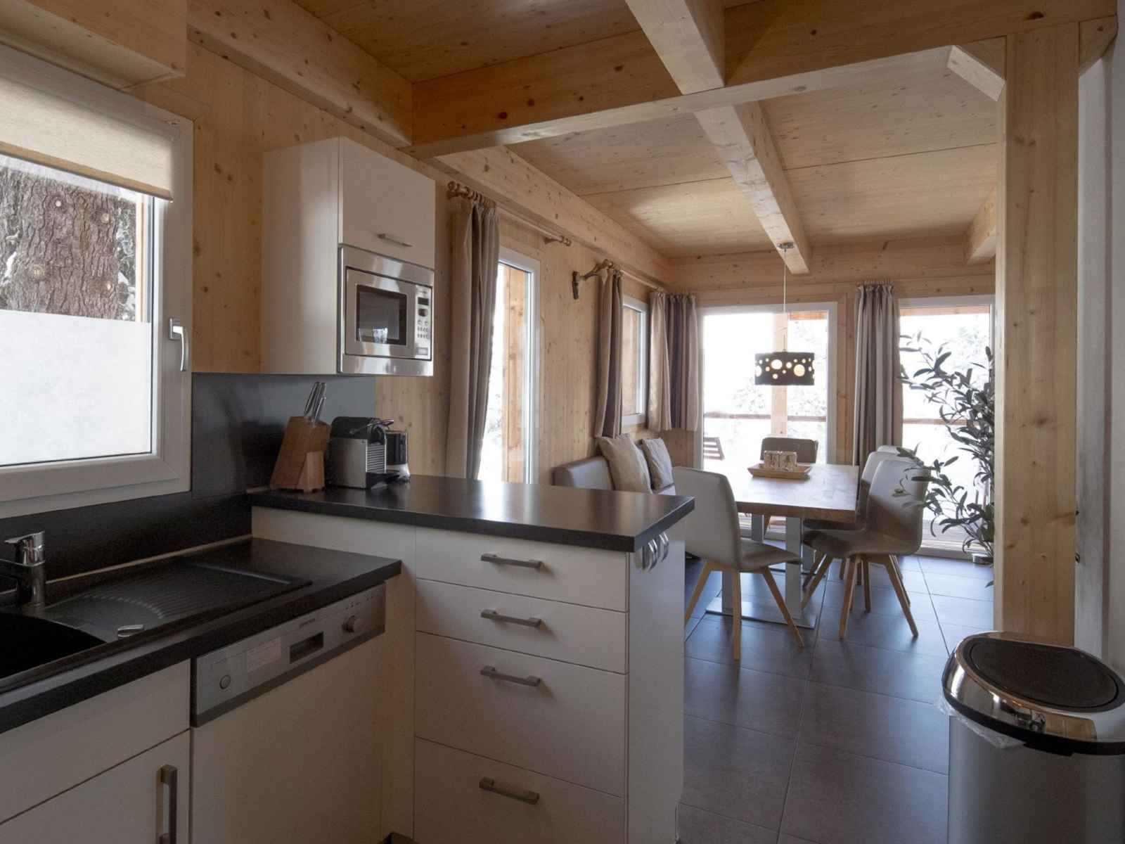 " 11 mit ir-sauna & sprudelwanne innen", chalet 5 pièces 120 m2 sur 2 niveaux. aménagement luxueux et de bon goût: séjour/salle à manger avec coin repas et tv (satellite) (écran plat). cuisine ouverte (four, lave-vaisselle, 4 plaques vitrocéramiques, grille-pain, bouilloire électrique, micro-ondes, cafetière électrique). douche/wc. À