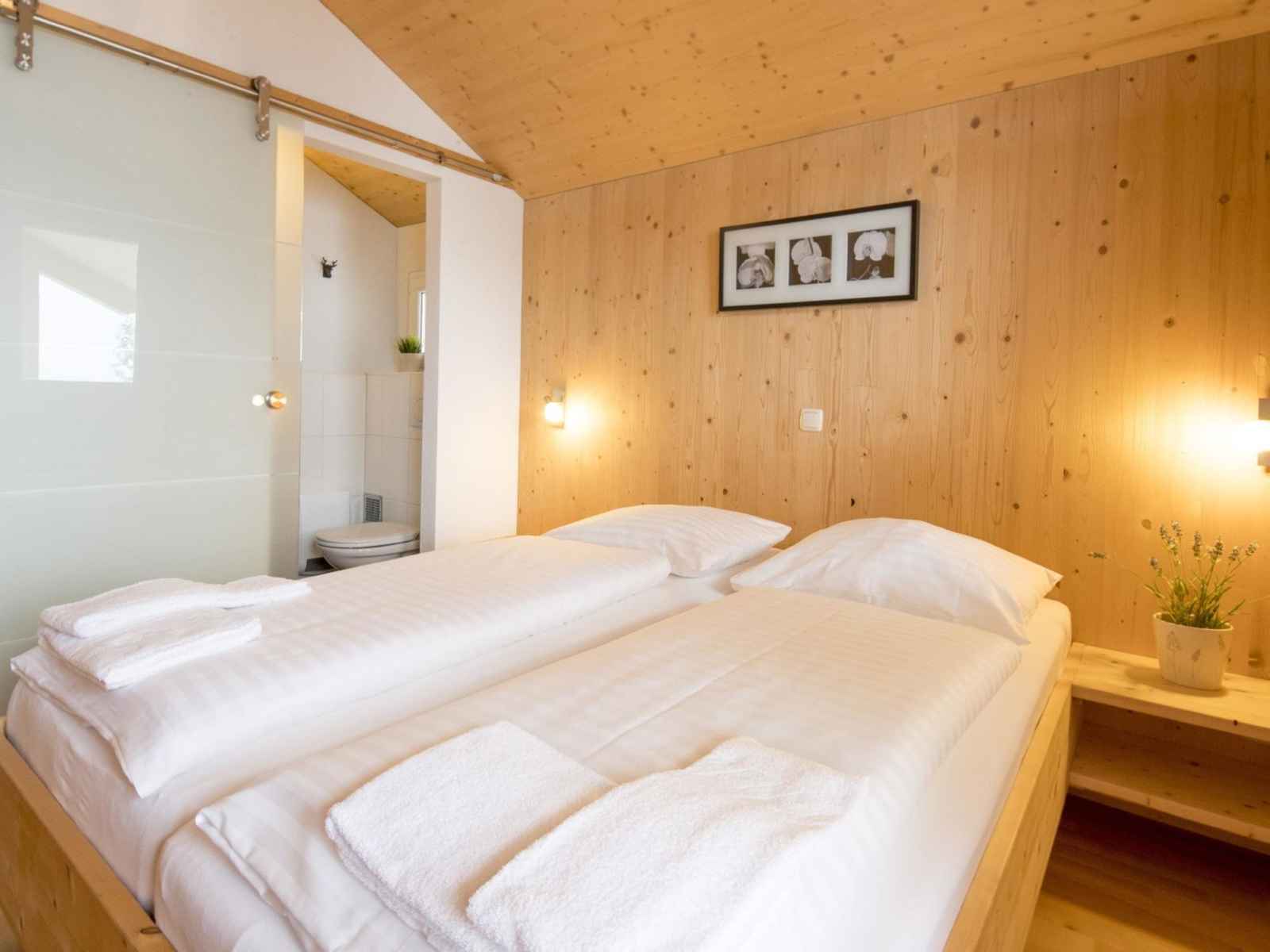 l'étage supérieur: 3 chambres doubles. 1 chambre avec 2 x 2 lits superposés. Bain/WC, douche/WC, balnéo, Sauna. Balcon. Mobilier de balcon. Belle vue sur les montagnes. A disposition: Internet (Connexion WIFI, gratuit). Veuillez noter: logement non-fumeur.