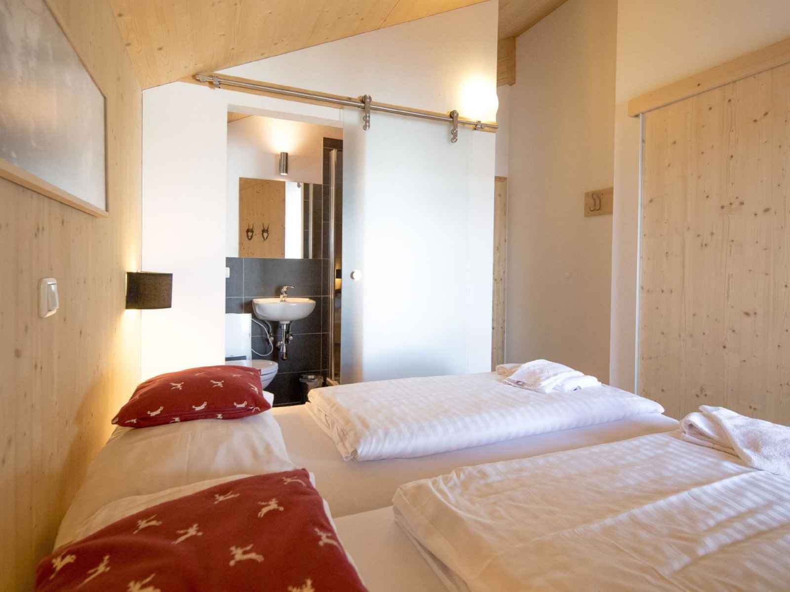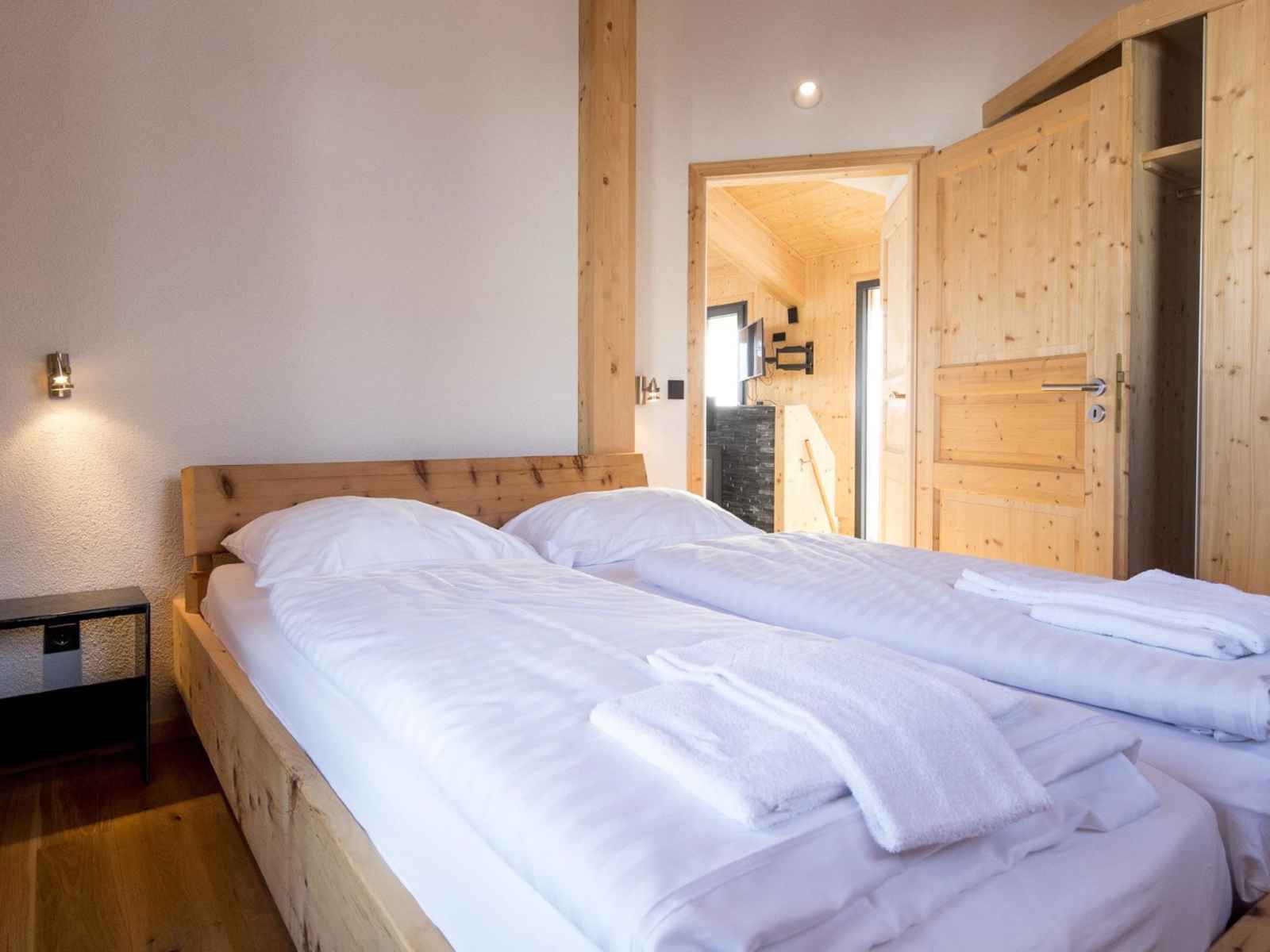 doubles. 1 chambre avec 2 x 2 lits superposés. Bain/douche/WC, balnéo, Sauna. Sol en bois. Balcon ou terrasse. Vue sur les montagnes et les alentours. A disposition: Internet (Connexion WIFI, gratuit). Place de parking près de la maison. Veuillez noter: logement non-fumeur. Cette location est un exemple de location / d'appartement. Si le nombre d’occupants n’atteint pas le maximum, toutes les maisons ne seront pas disponibles.