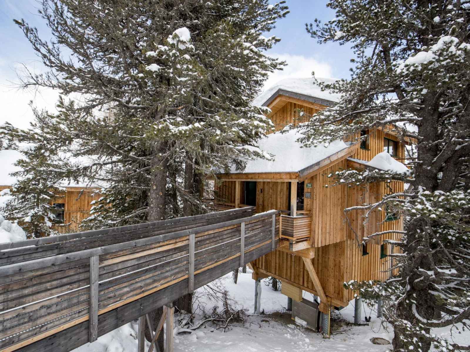 Turracher höhe: village de vacances confortable "alpenpark turrach by alps resorts", 1'800 m au dessus du niveau de la mer. 49 maisons dans le même complexe de vacances. À 2 km du centre, à 2 km du lac, à 2 km du domaine skiable, dans la forêt. infrastructures de la résidence: réception, connexion wifi, local pour les skis, chauffage