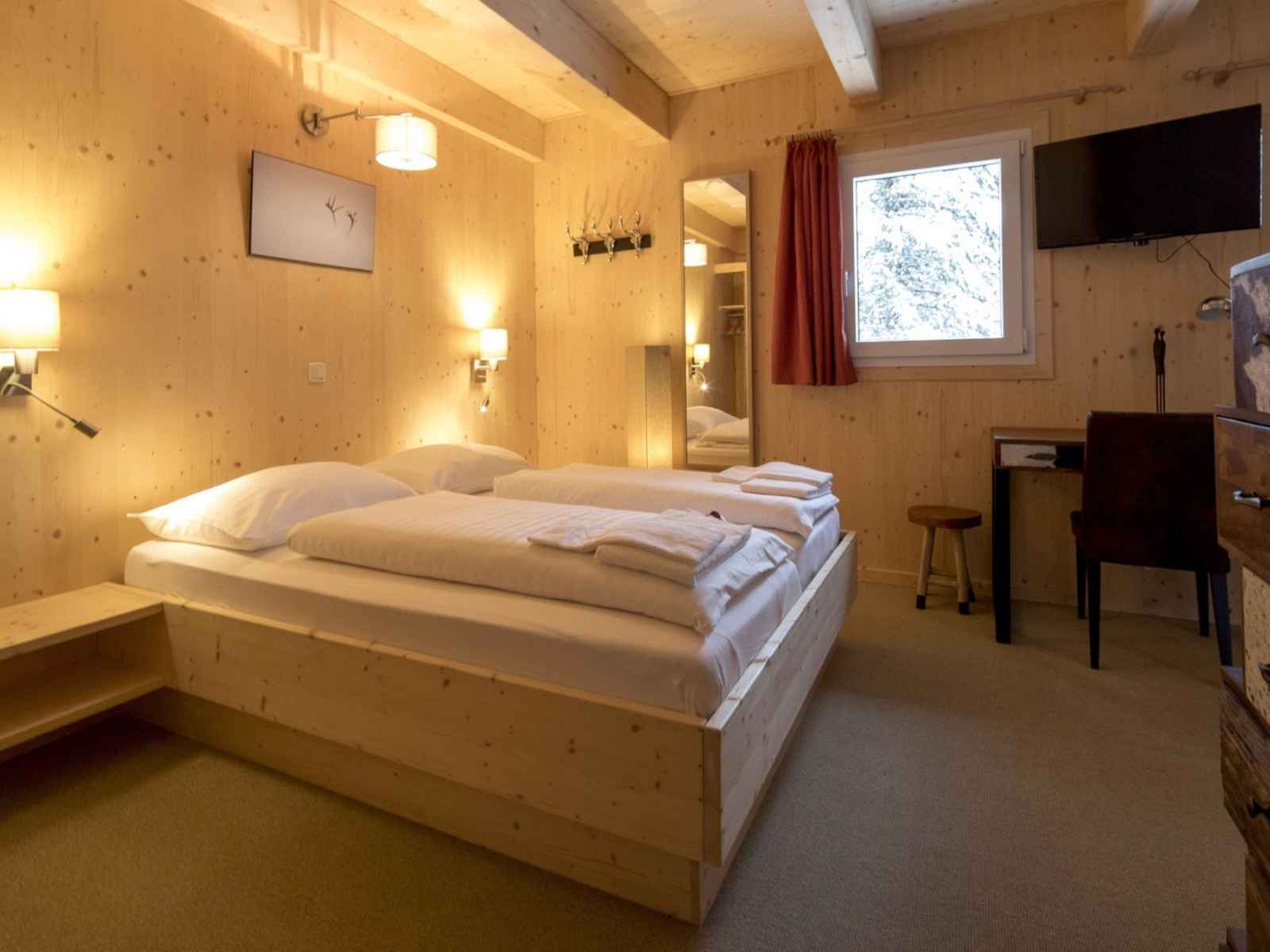 l'étage supérieur: 2 chambres doubles. 1 chambre avec 1 x 2 lits superposés, 1 lit double. 1 chambre avec 1 x 2 lits superposés. Bain/WC, douche/WC, balnéo, Sauna. Balcon. Mobilier de balcon. Belle vue sur les montagnes. A disposition: Internet (Connexion WIFI, gratuit). Veuillez noter: logement non-fumeur.