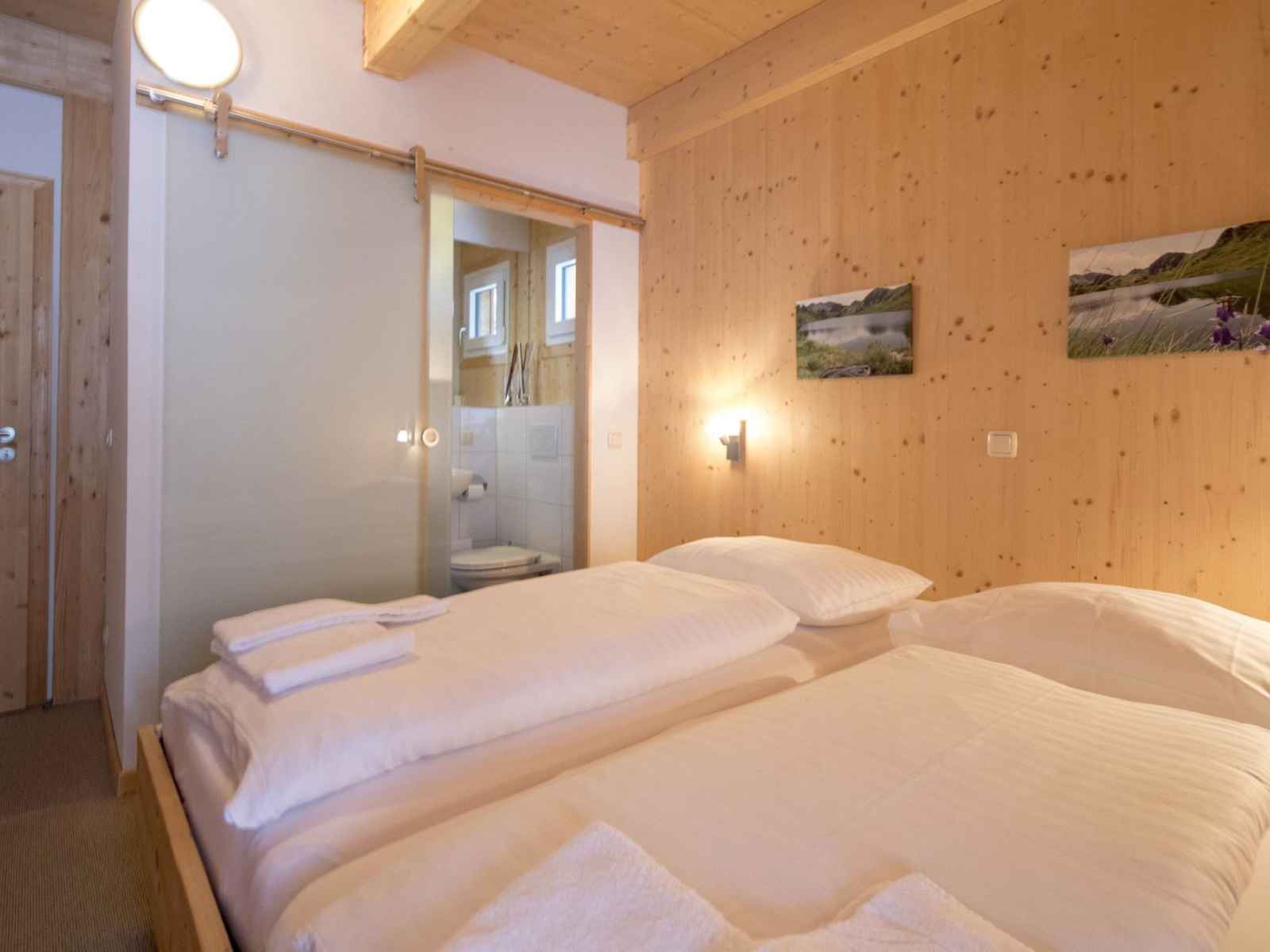 chambres doubles. 1 chambre double avec 1 lit et 1 x 1 lits superposés. Bain/WC, douche/WC, balnéo, Sauna.