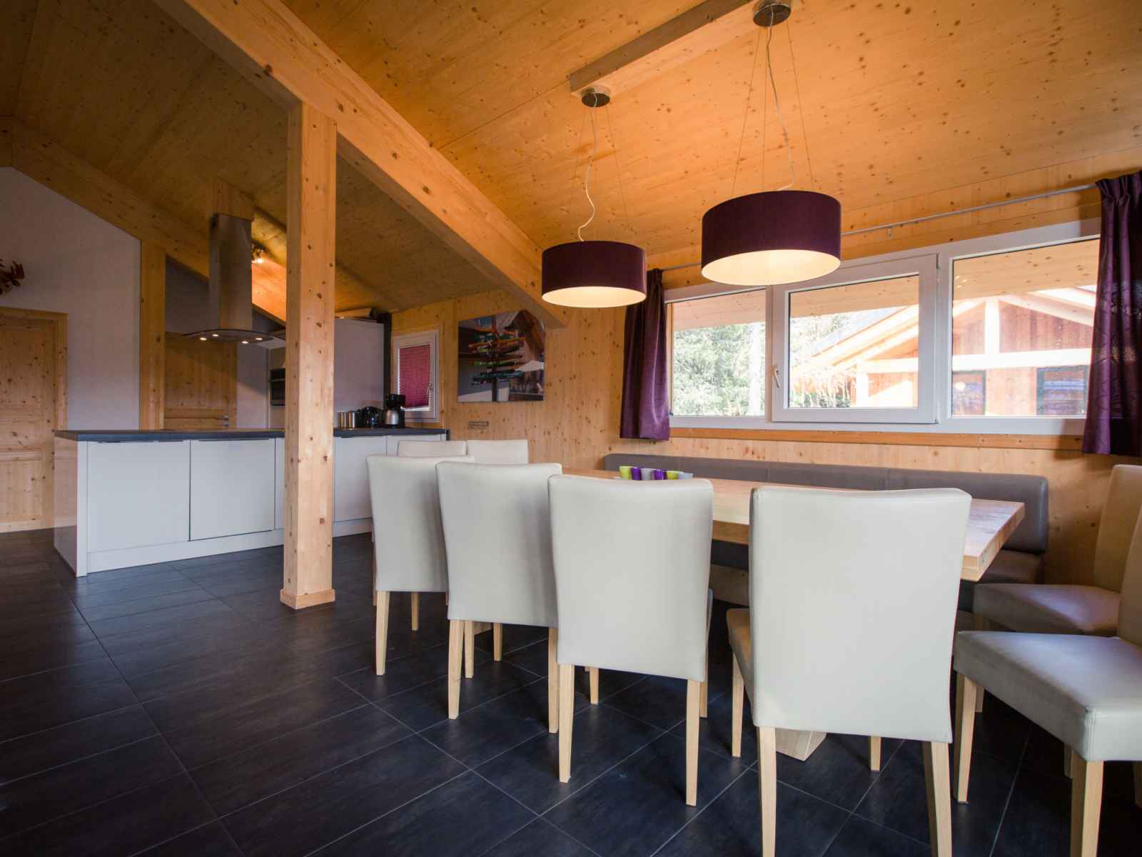 " 37 mit ir-sauna und sprudelbad innen", chalet 6 pièces 130 m2. spacieux, aménagement luxueux et avec beaucoup de bois: séjour/salle à manger avec coin repas et tv (satellite) (écran plat). cuisine ouverte (four, lave-vaisselle, 4 plaques vitrocéramiques, grille-pain, bouilloire électrique, micro-ondes, cafetière électrique). douche/wc.