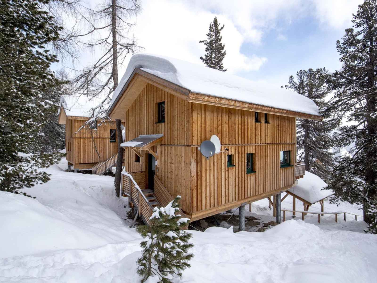 Turracher höhe: village de vacances confortable "alpenpark turrach by alps resorts", 1'800 m au dessus du niveau de la mer. 49 maisons dans le même complexe de vacances. À 2 km du centre, à 2 km du lac, à 2 km du domaine skiable, dans la forêt. infrastructures de la résidence: réception, connexion wifi, local pour les skis, chauffage