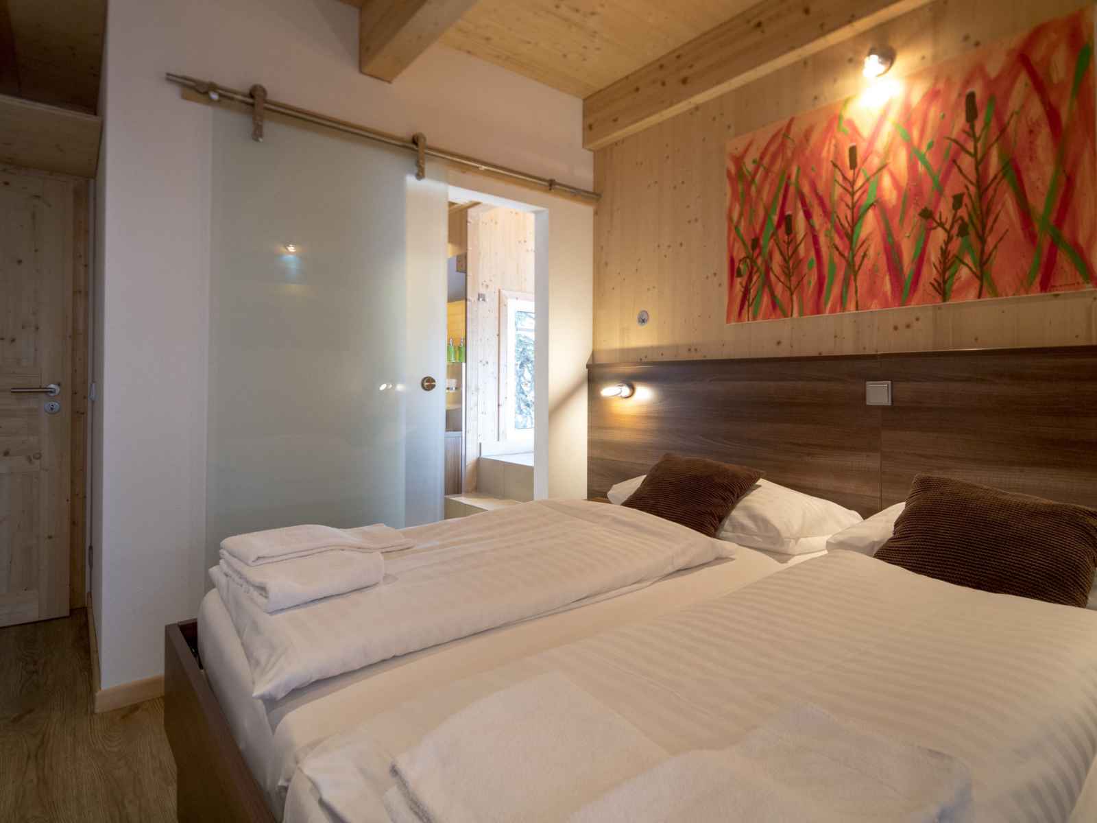l'étage supérieur: 4 chambres doubles. 1 chambre avec 2 x 2 lits superposés. Bain/WC, douche/WC, balnéo, Sauna. Balcon. Mobilier de balcon. Belle vue sur les montagnes. A disposition: Internet (Connexion WIFI, gratuit). Veuillez noter: logement non-fumeur.