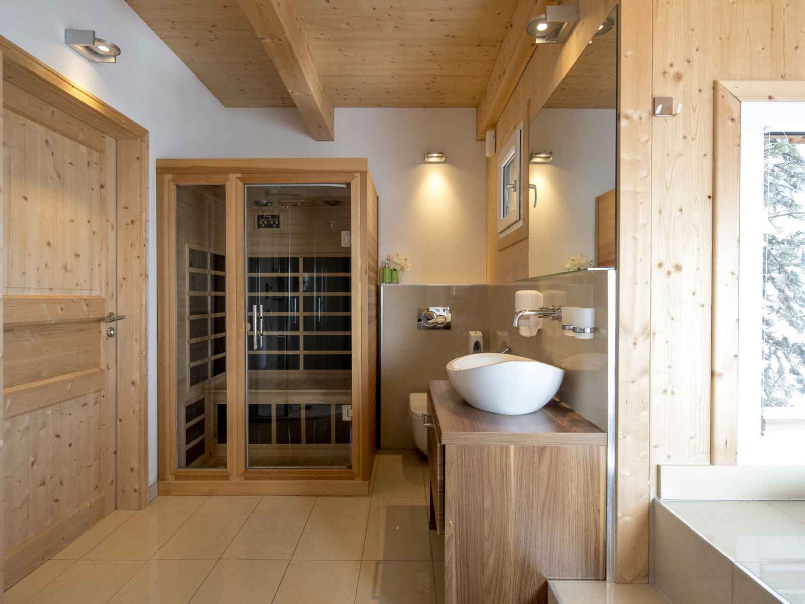 " 38 mit ir-sauna und sprudelbad innen", chalet 6 pièces 120 m2 sur 2 niveaux. aménagement luxueux et de bon goût: séjour/salle à manger avec coin repas et tv (satellite) (écran plat). cuisine ouverte (four, lave-vaisselle, 4 plaques vitrocéramiques, grille-pain, bouilloire électrique, micro-ondes, cafetière électrique). douche/wc. À
