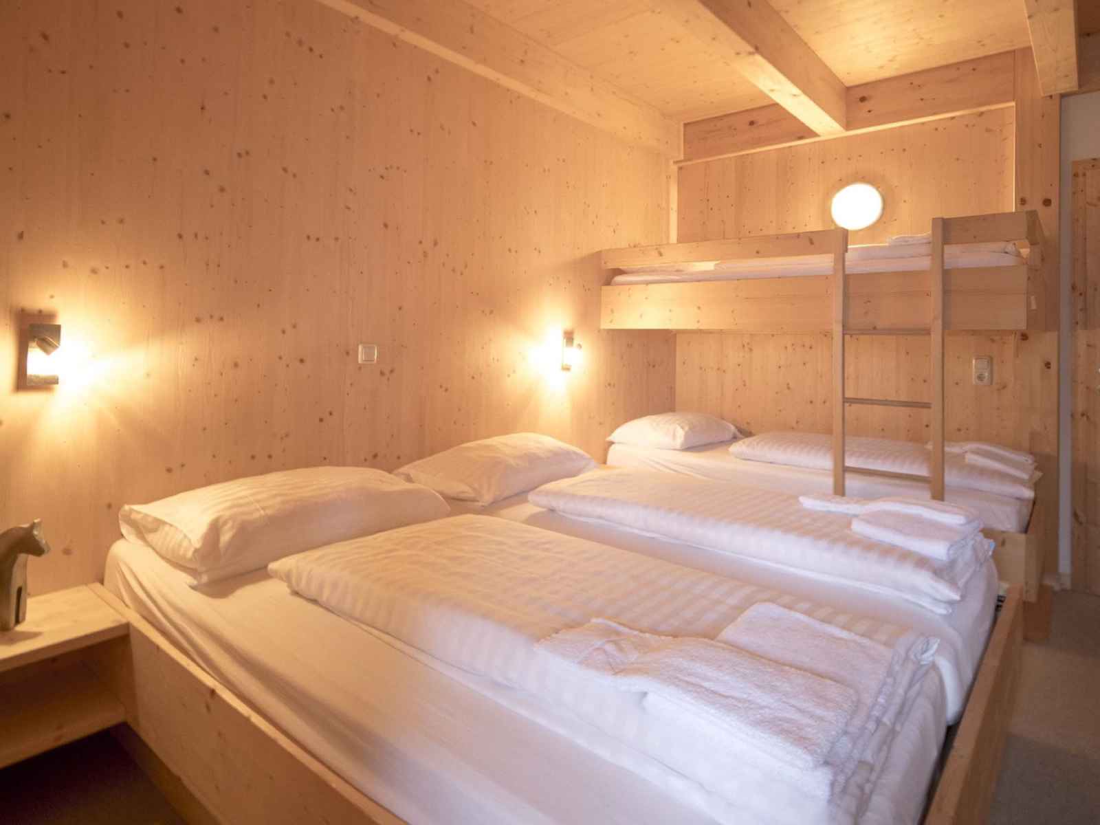 l'étage supérieur: 3 chambres doubles. 1 chambre avec 1 lit et 1 x 1 lits superposés. Bain/WC, douche/WC, balnéo, Sauna. Balcon. Mobilier de balcon. Belle vue sur les montagnes. A disposition: Internet (Connexion WIFI, gratuit). Veuillez noter: logement non-fumeur.