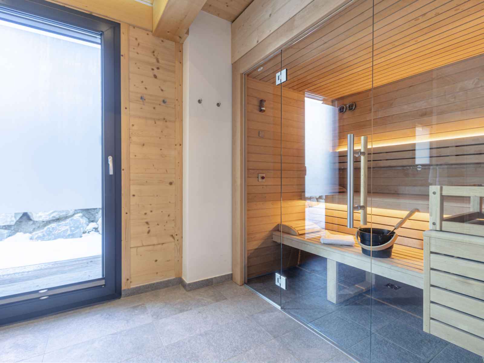 "superior 26 mit sauna & hot tub", chalet 5 pièces 135 m2 sur 2 niveaux. clair, aménagement moderne et de bon goût: séjour/salle à manger avec coin repas et tv (satellite) (écran plat). 4 chambres doubles. cuisine ouverte (four, lave-vaisselle, 4 plaques vitrocéramiques, grille-pain, bouilloire électrique, micro-ondes, cafetière