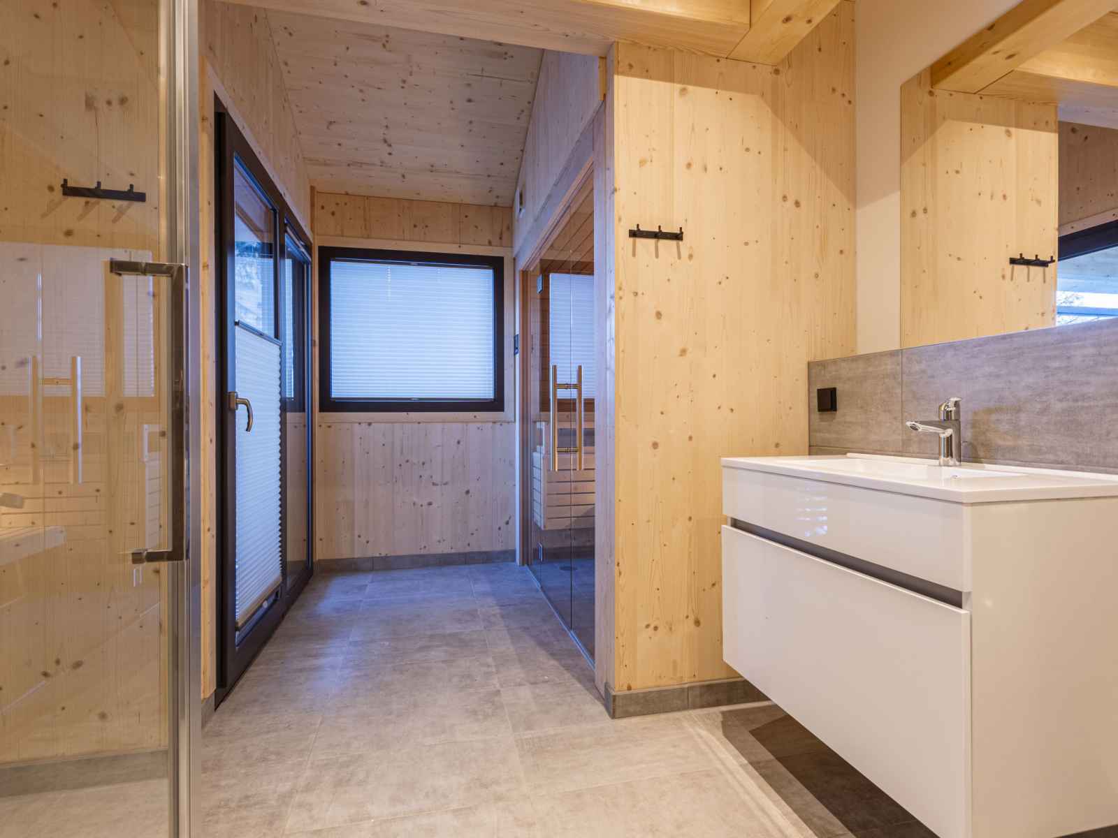 "superior 9 mit sauna & hot tub", chalet 5 pièces 135 m2. clair, aménagement moderne et de bon goût: séjour/salle à manger avec coin repas et tv (satellite) (écran plat). 4 chambres doubles. cuisine ouverte (four, lave-vaisselle, 4 plaques vitrocéramiques, grille-pain, bouilloire électrique, micro-ondes, cafetière électrique). 3