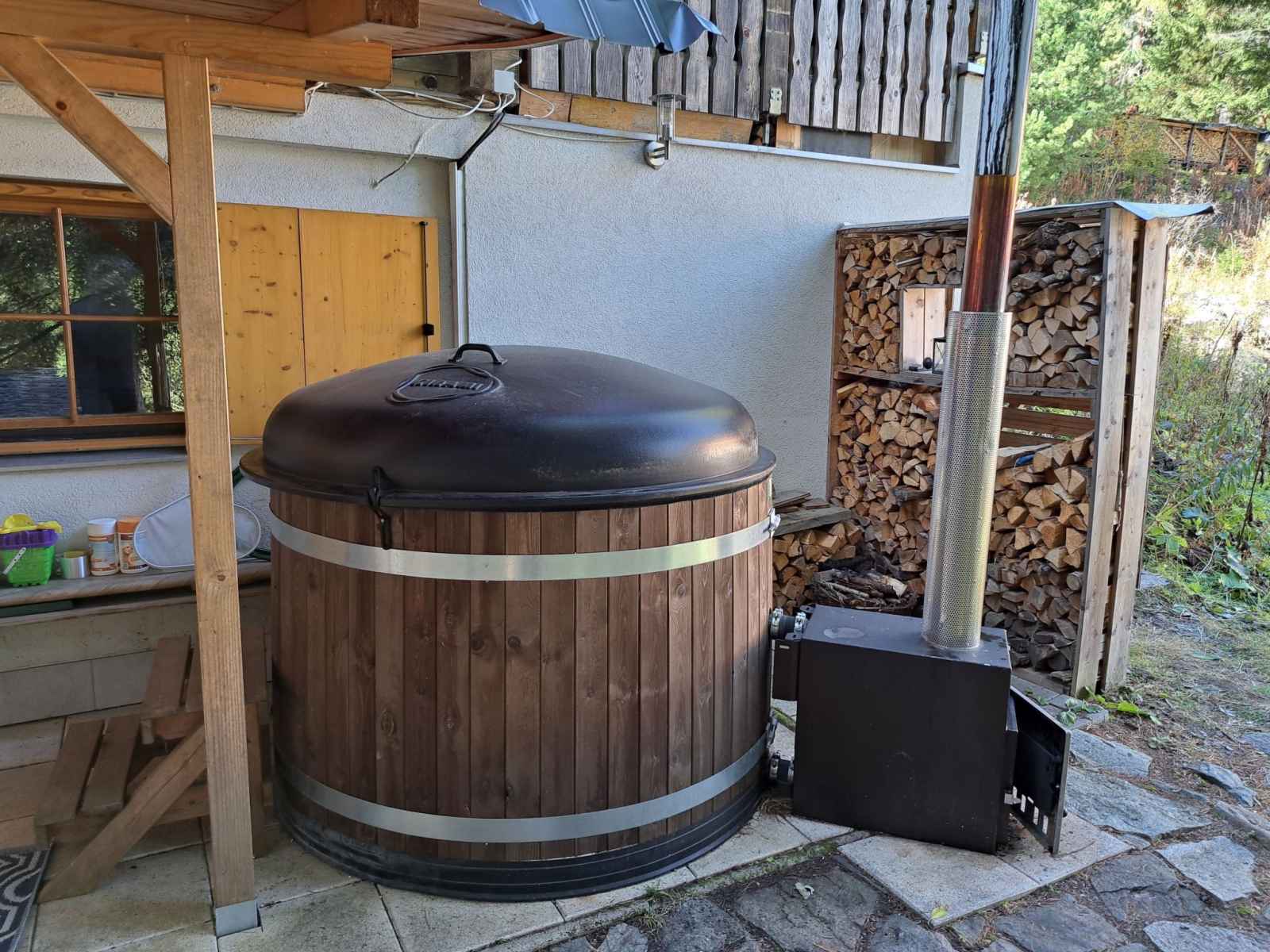 "zirbenwaldhütt'n", maison 5 pièces 90 m2 sur 3 niveaux. spacieux: avec tv, écran plat, radio et poêle à bois. cuisine ouverte (4 plaques vitrocéramiques, grille-pain, bouilloire électrique) avec table pour les repas. douche/wc. À l'étage inférieur: coin cuisine (2 plaques de cuisson, grille-pain, bouilloire électrique, cafetière