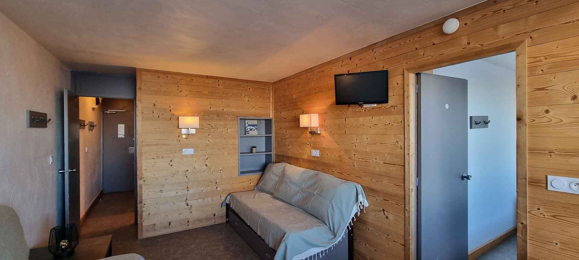 l'appartement se trouve au niveau "h" du paquebot des neiges et est accessible par l'ascenseur "zénith". il se compose d'un séjour, d'une cuisine séparée, d'une chambre et d'une salle de bains avec wc. son balcon est exposé nord et offre une jolie vue sur le