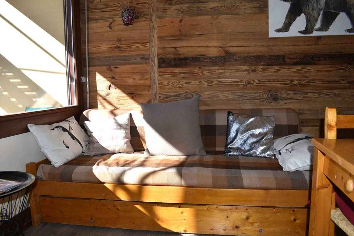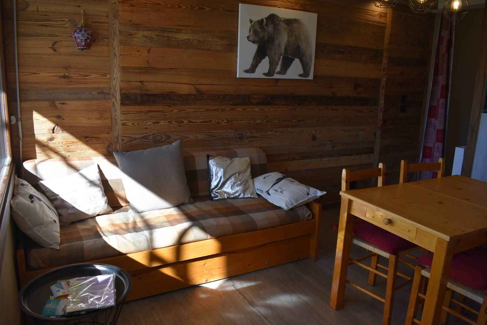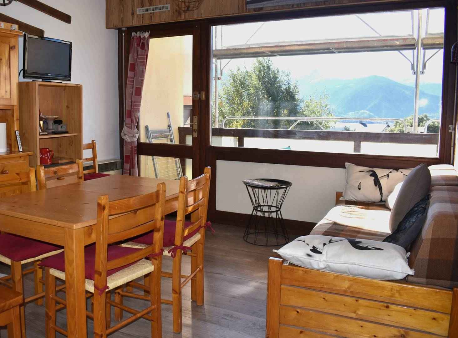 joli 2 pieces cabine en rez-de-chaussée de bon standing style chalet exposé plein sud dans une petite résidence situé à 900 mètres du centre et des télécabines.