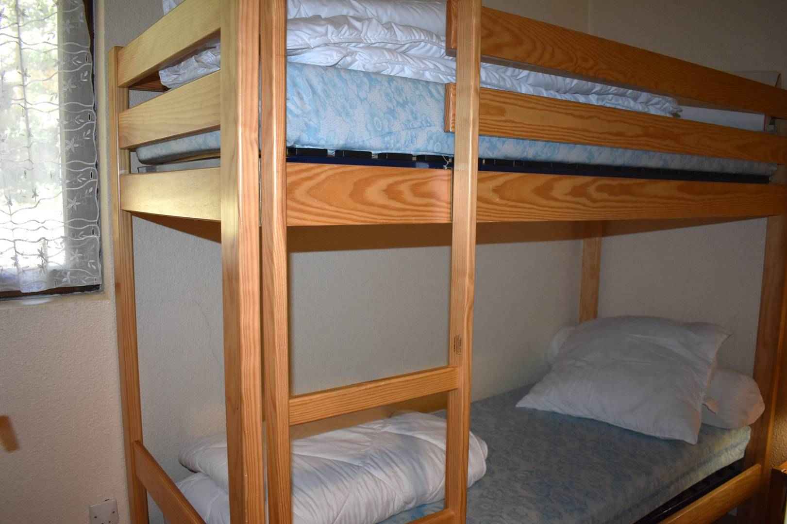 -Un coin cabine avec lits superposés et fenêtre, parfait pour les enfants.
