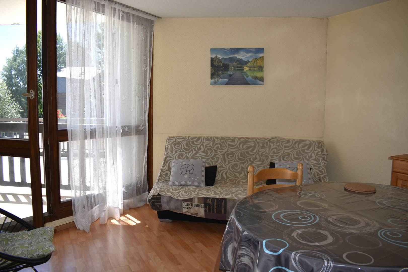 -Un convertible type clic-clac dans le séjour permettant 2 couchages supplémentaires, une grande TV et un placard de rangement.