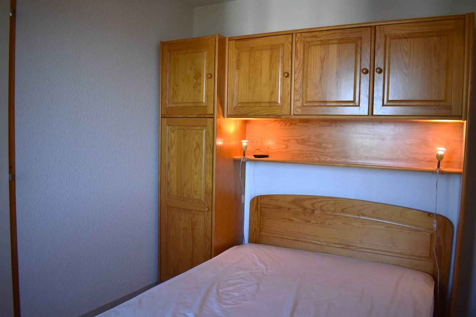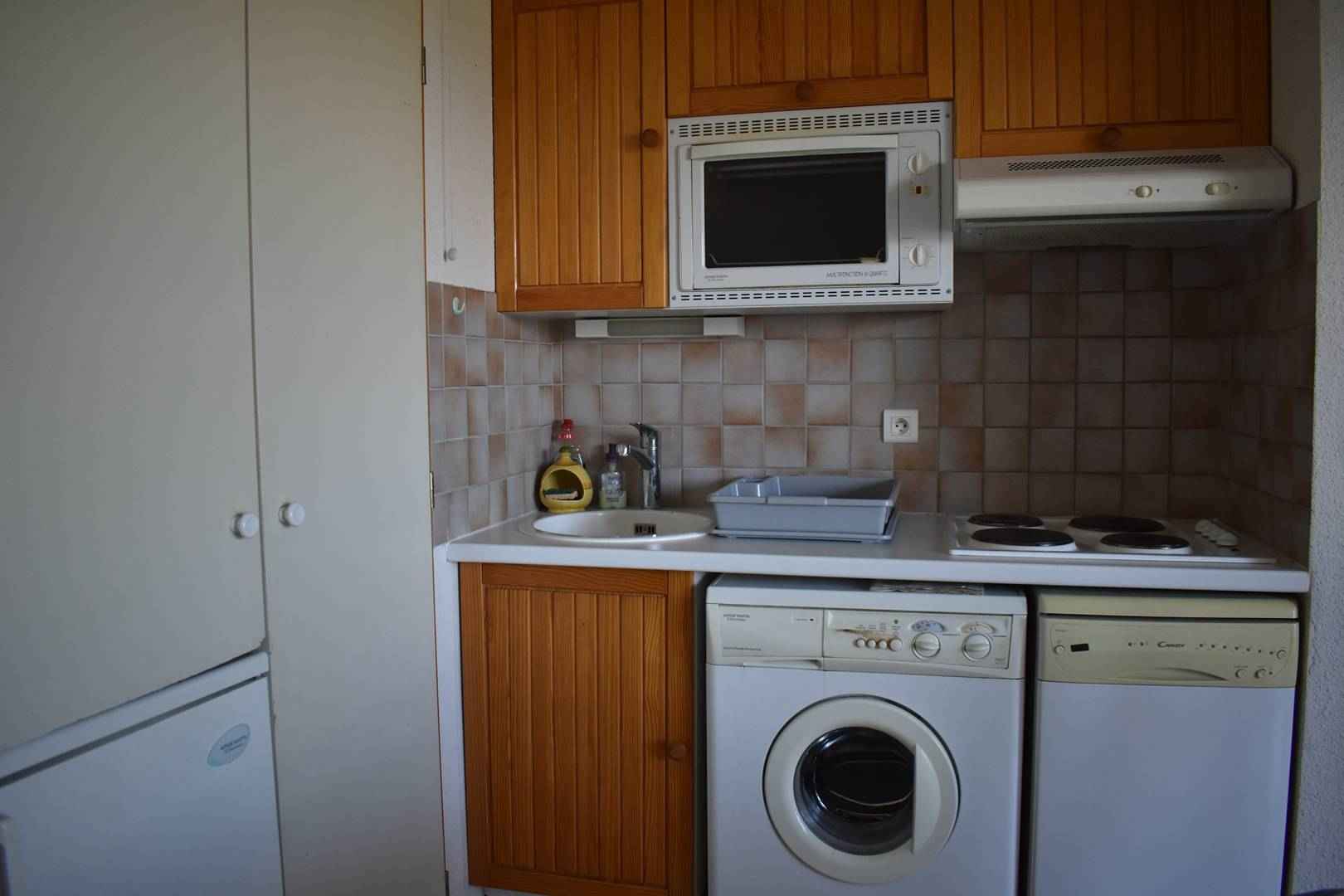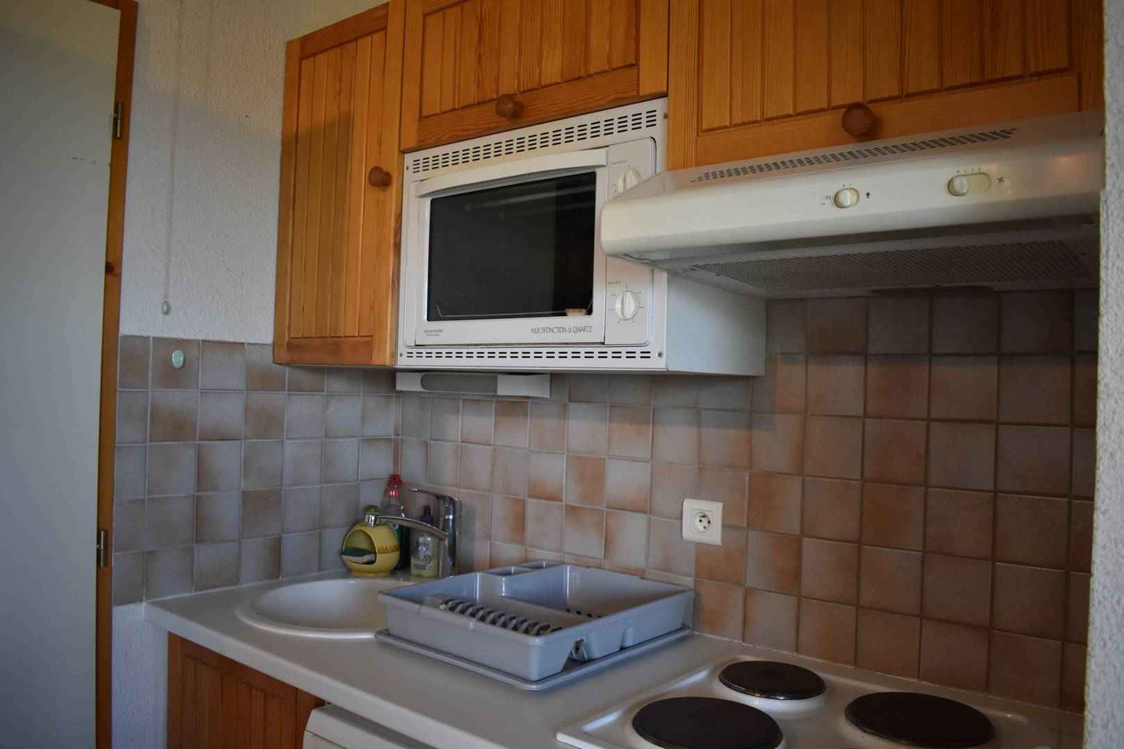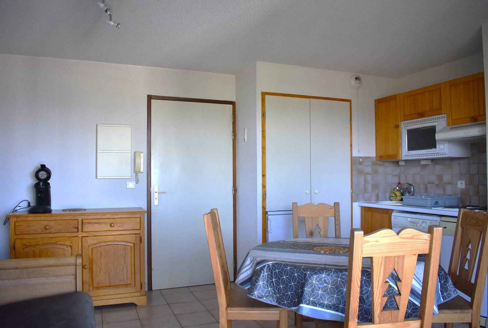 avec un coin cuisine, frigo top, plaque électrique 4 feux, four, micro-ondes, cafetière à filtre et Senseo / Salle d'eau avec WC / Chambre avec lit double en 140 exposition sud / Balcon plein sud.