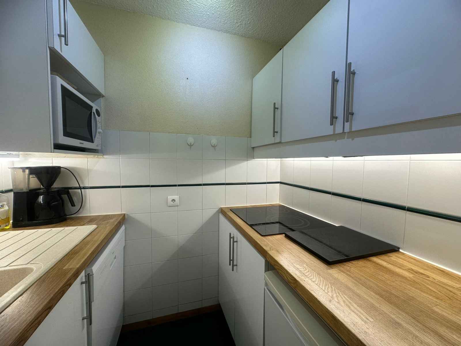 cuisine : indépendante avec 1 plaque vitrocéramic 3 feux, un micro-ondes grill, un réfrigérateur et un