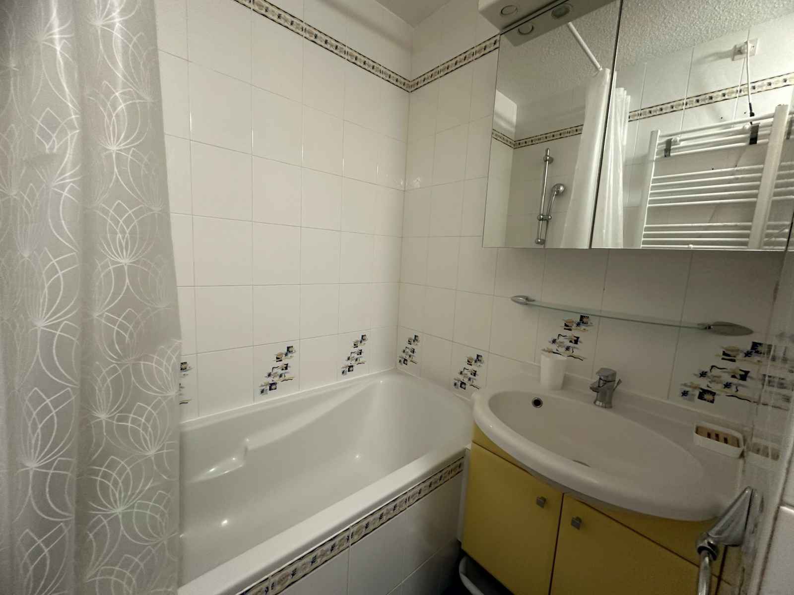 lave-vaisselle Chambre: 2 lits 1 personne Salle de bain: baignoire WC indépendants Place de parking n°10 incluse (parking R3000 : entrée du bas) Draps et serviettes non fournis Equipé de couvertures Libre accès à la piscine WIFI station payant Animaux non tolérés
