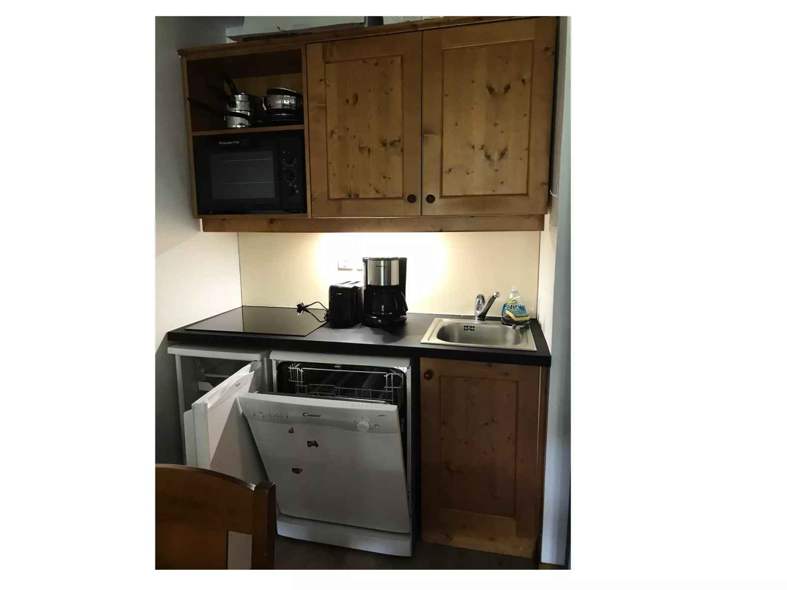 Équipements dans la cuisine : coin cuisine ouvert sur le séjour.