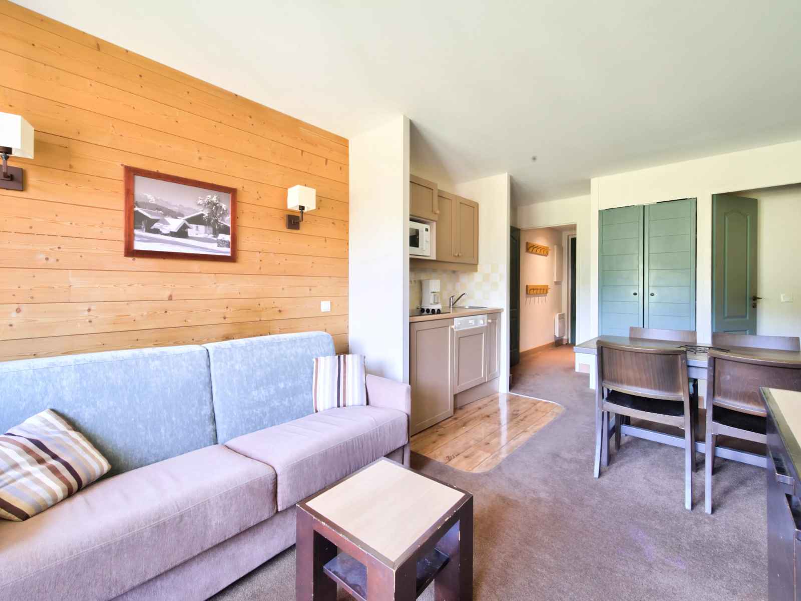 ce bel appartement avec une belle vue dégagée sur la vallée se compose d'une petite cuisine indépendante équipée (de