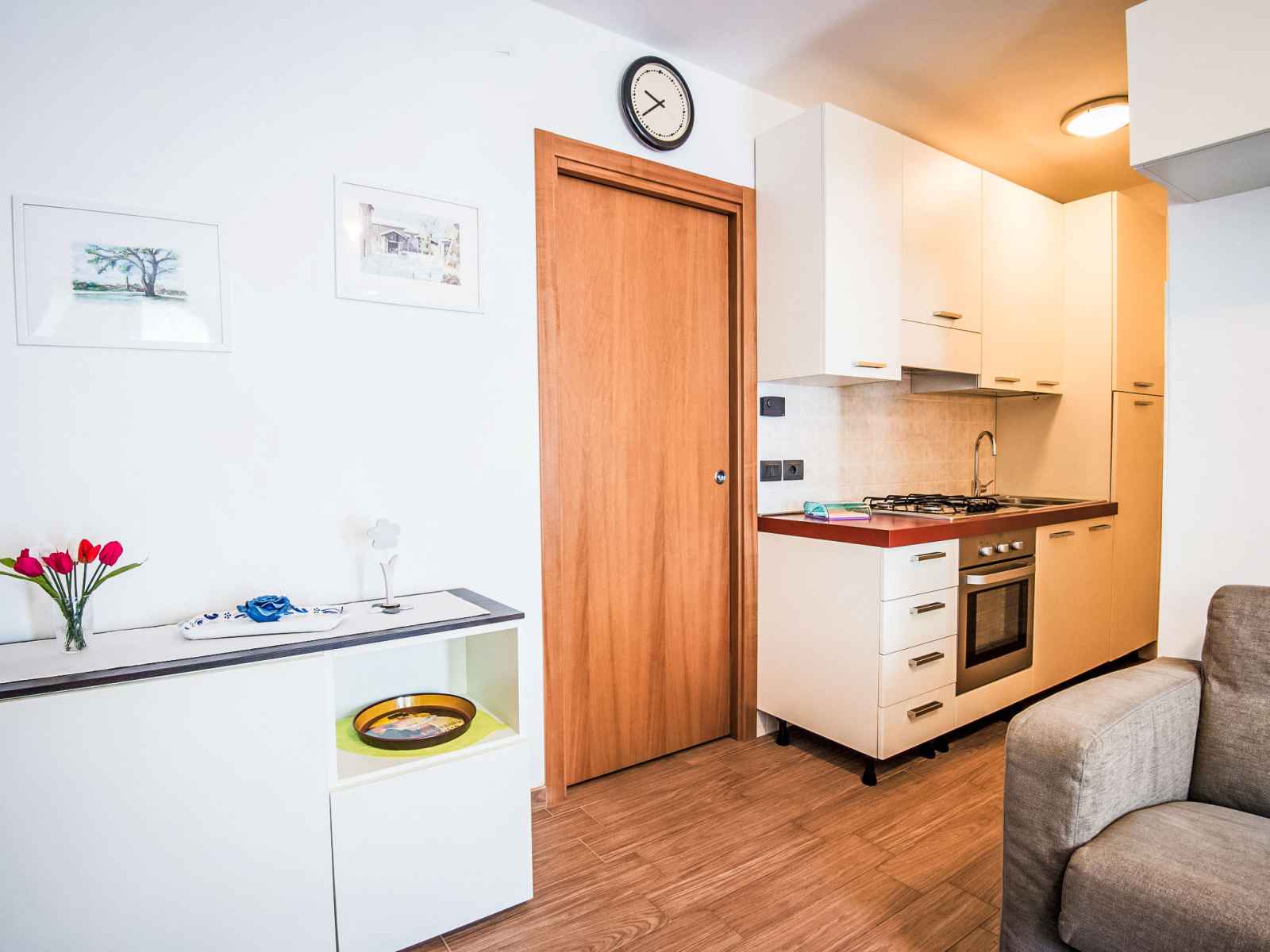 "sergio", apt 2 pièces 50 m2, au rez-de-chaussée, situation sud. clair, partiellement rénové en 2014, aménagement fonctionnel et confortable: séjour/chambre à coucher avec 1 divan-lit, table pour les repas et tv (satellite) (écran plat). sortie sur le jardin. 1 chambre avec 1 lit double et tv (écran plat). sortie sur le jardin. petite