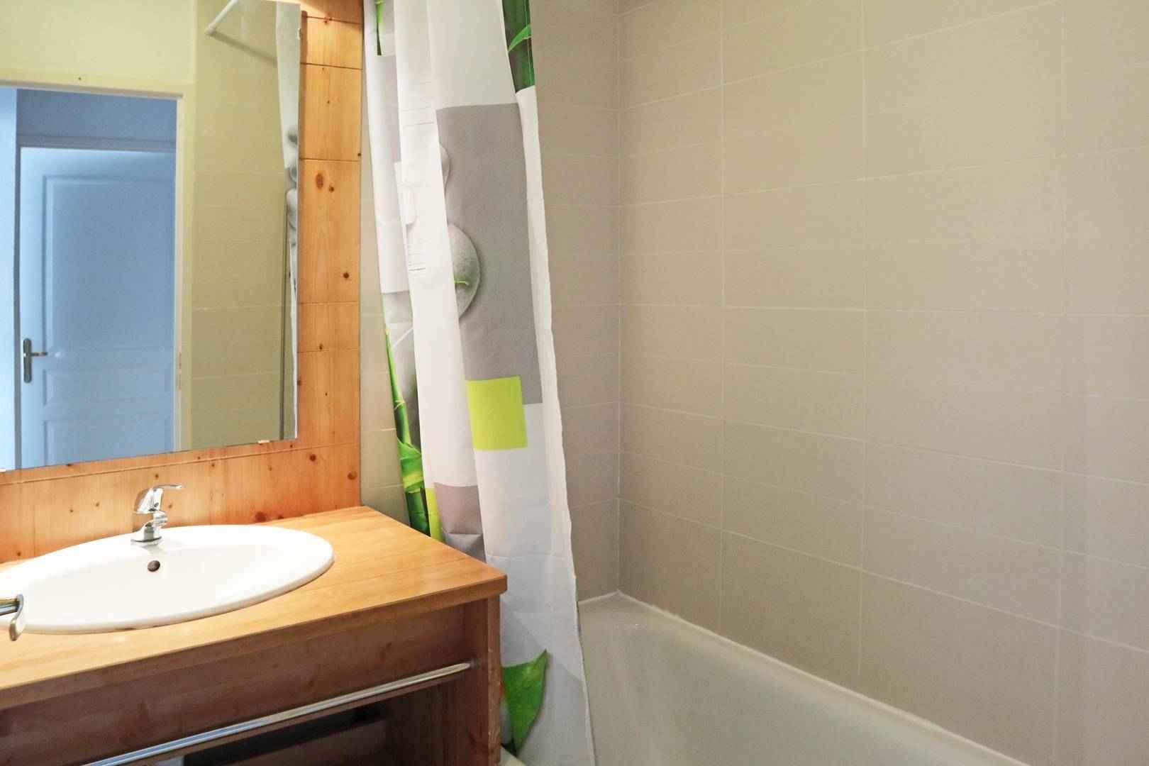 Dans une résidence avec piscine intérieure aux orres 1800, vue sur les pistes, à proximité des commerces et activités, départ ski aux pieds. très bel appartement équipé pour 4 personnes de bon confort, comprenant une entrée, une salle de bains et wc séparés, un séjour avec deux lits gigognes une place, une chambre avec un lit deux
