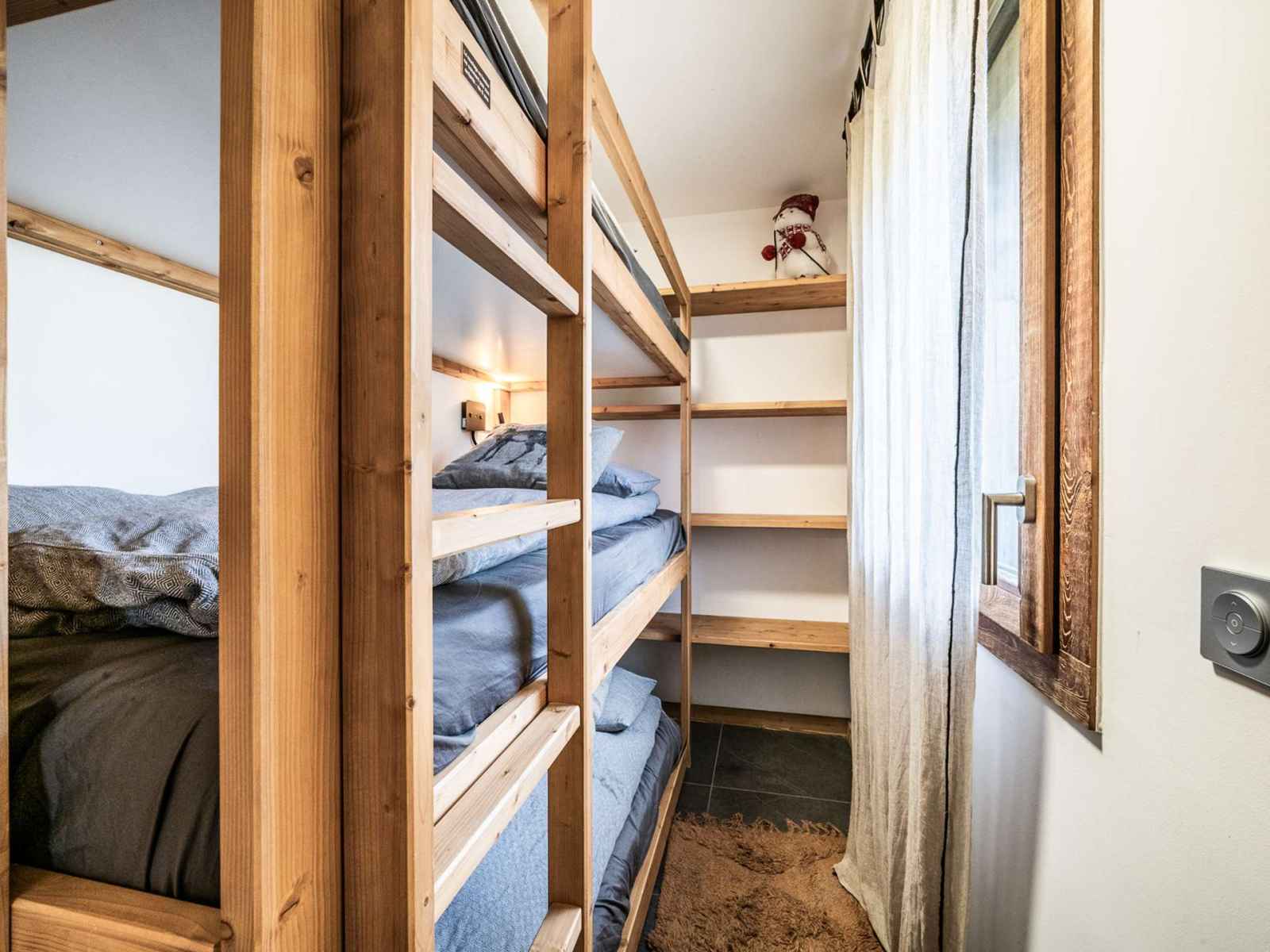 Une cabine avec 2 lits simples superposés et rangement