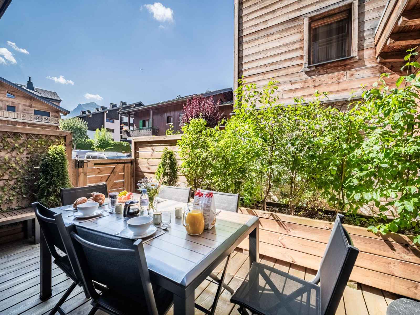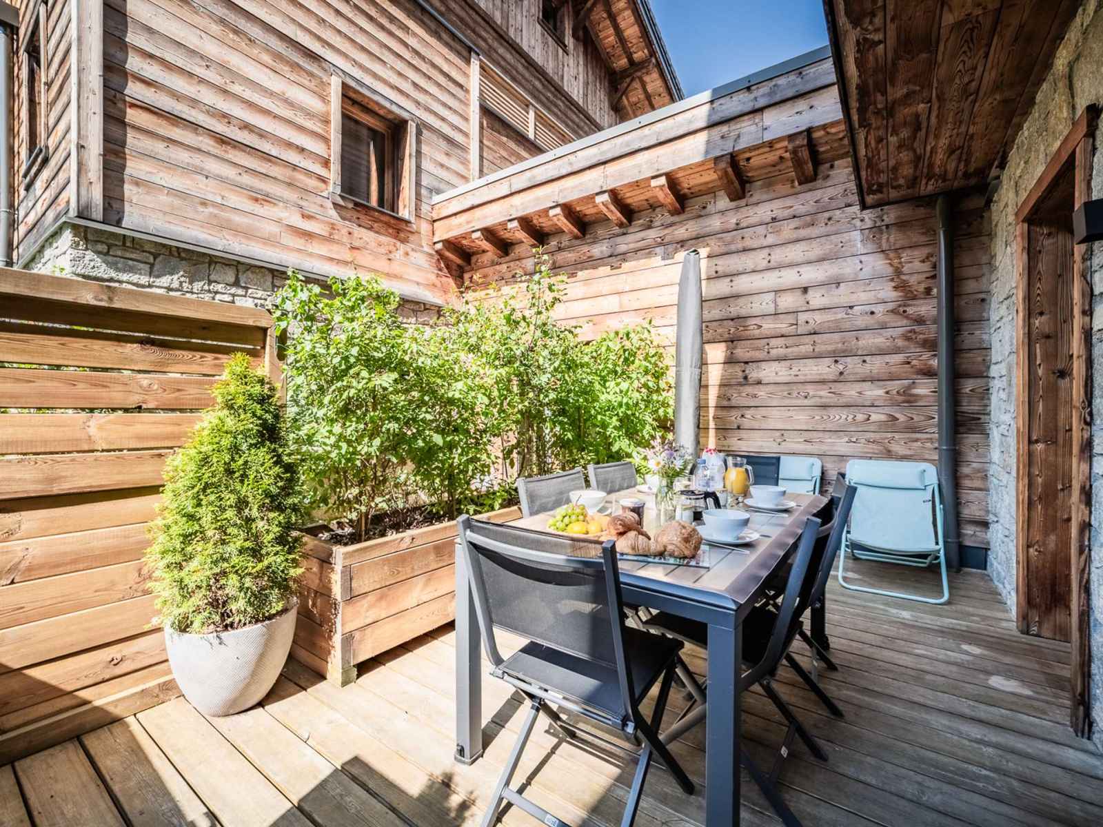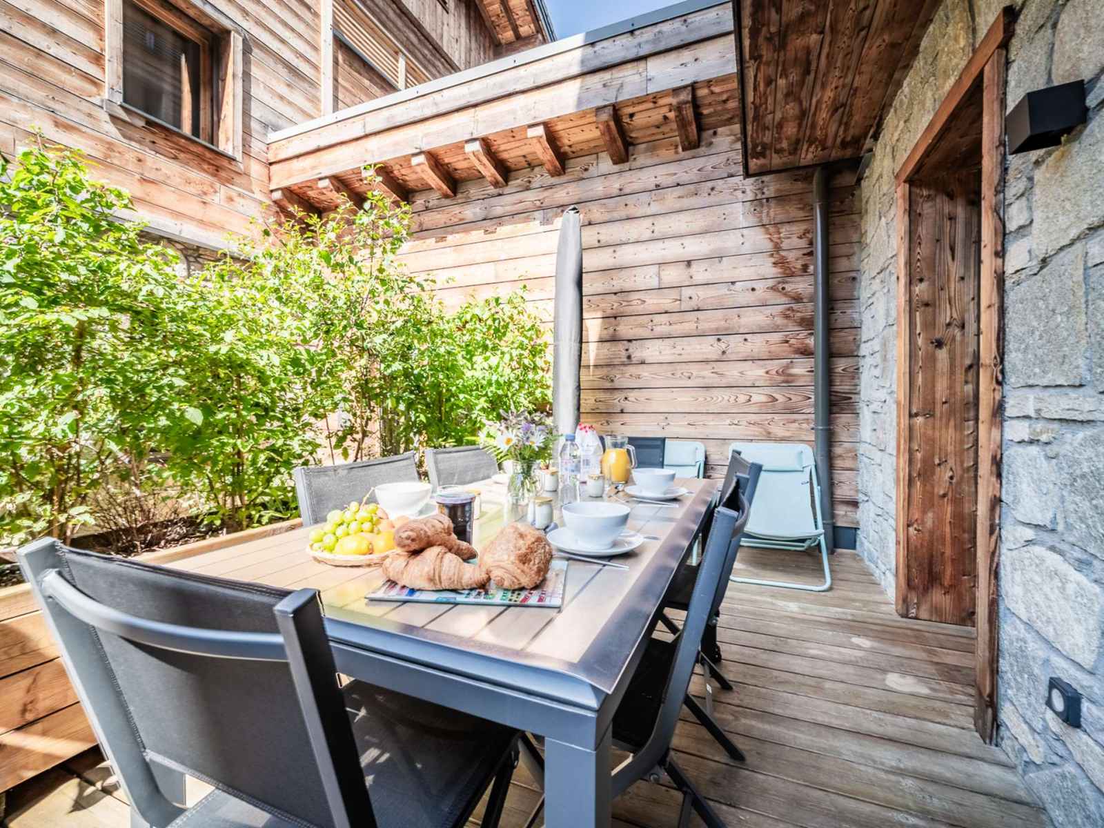 - Une terrasse avec table de jardin