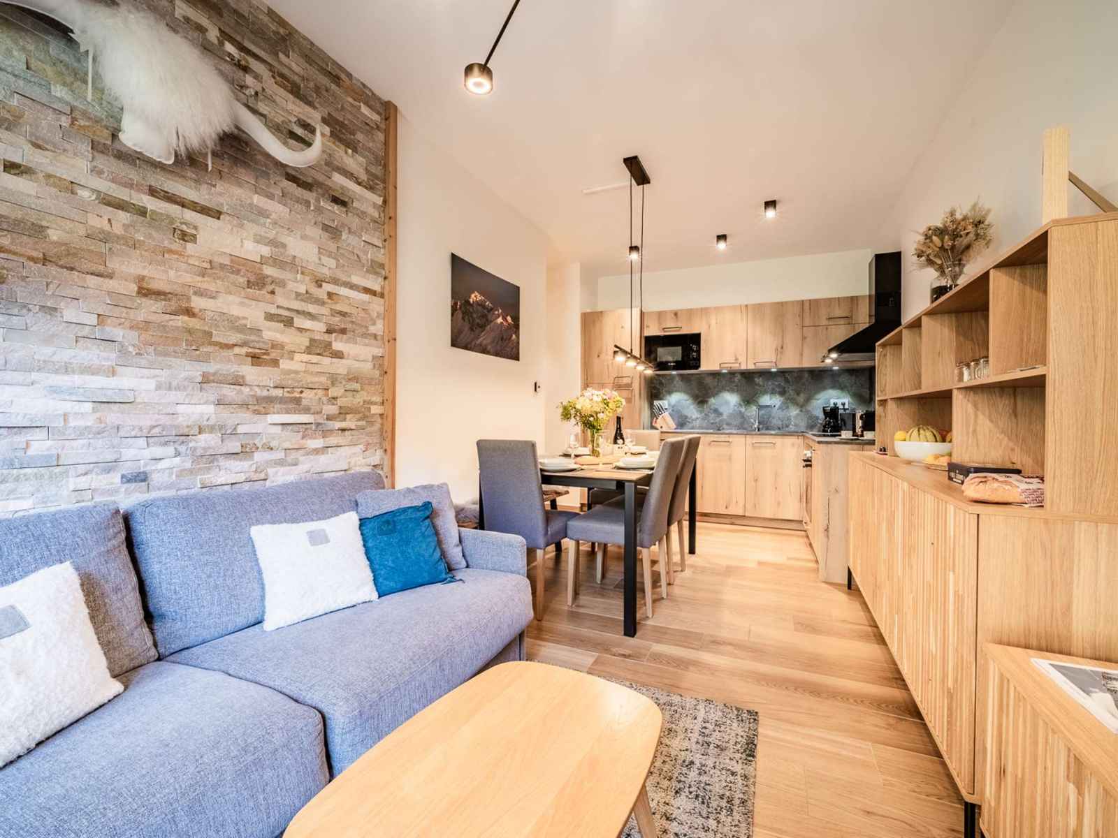 L’appartement d’une superficie de 43m² peut accueillir 4 à 6 personnes. Équipé tout confort, il se compose de :