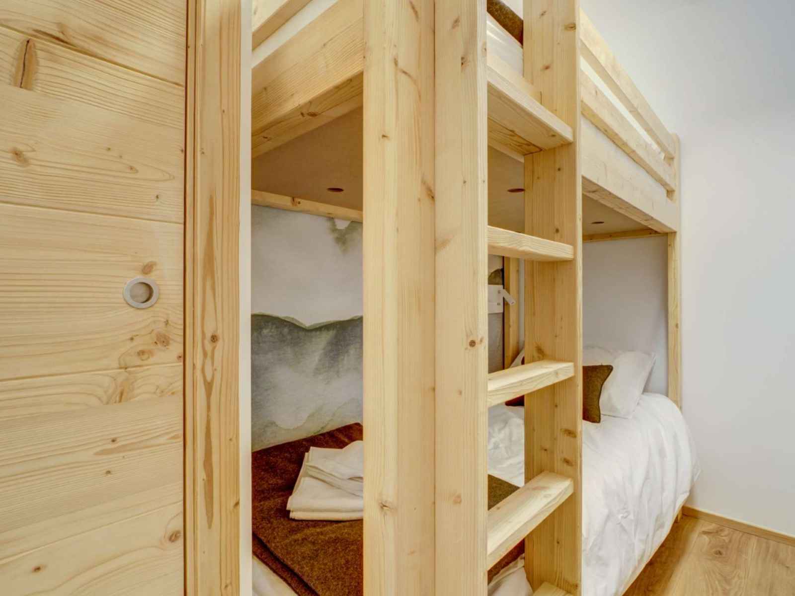 - Une chambre cabine avec lits superposés, rangements
