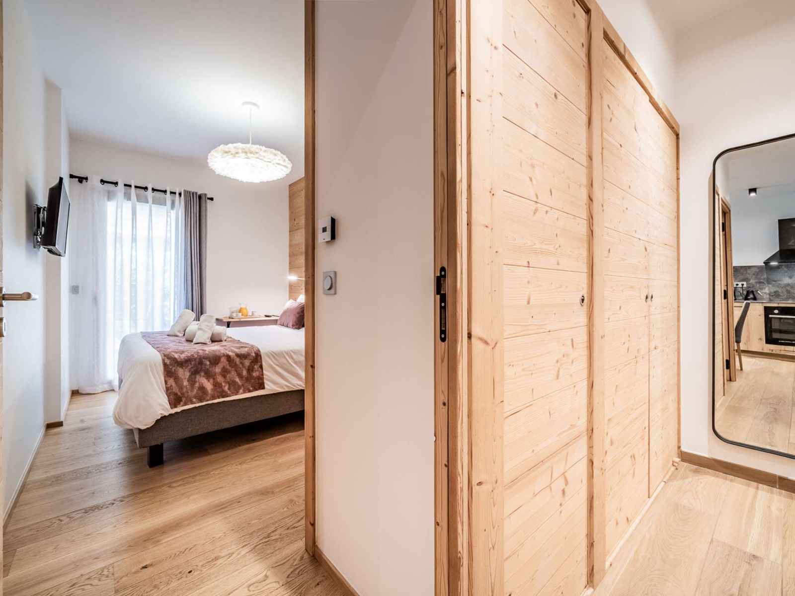 - Une chambre avec un lit double pouvant se transformer en deux lits simples, rangements